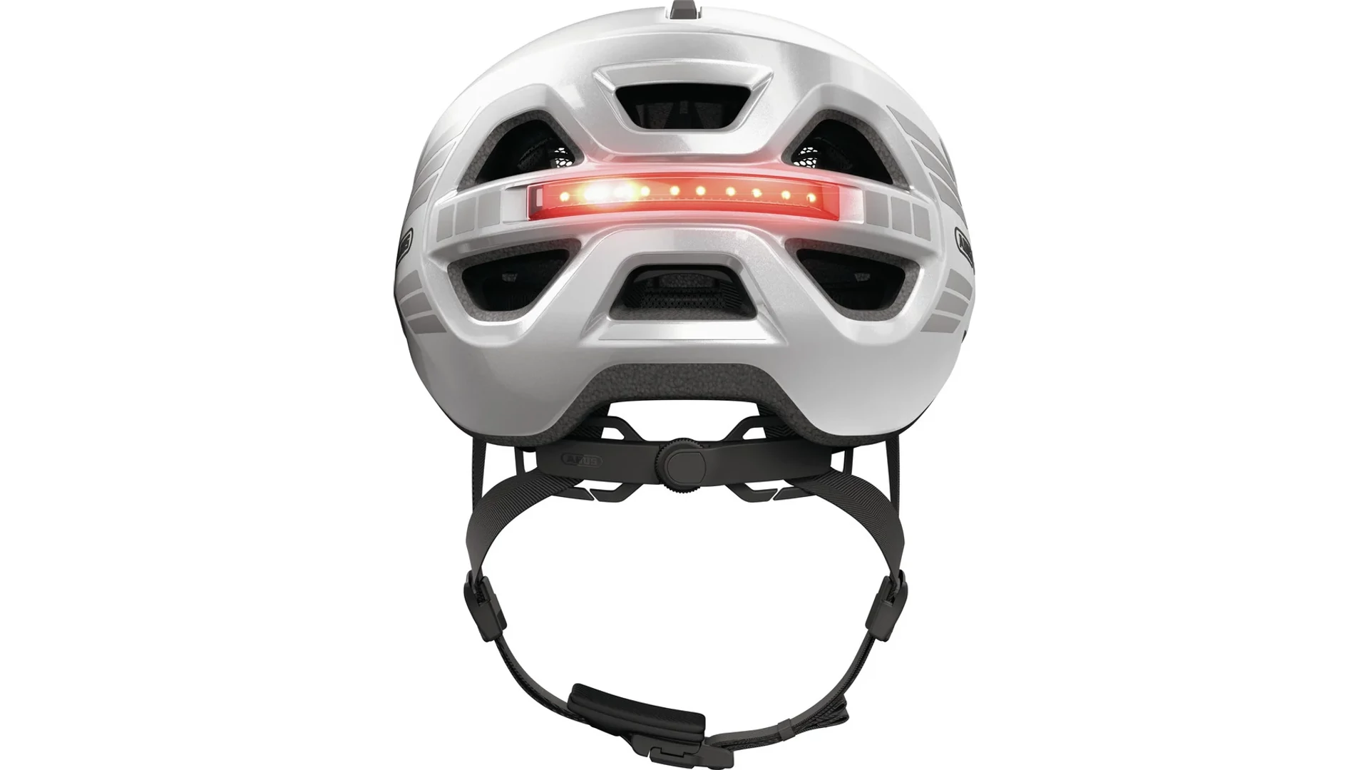 A hátsó lámpa most már mágneses és tölthető. A sisak hátsó részén elhelyezett elegáns fénycsík 180 fokos láthatóságot biztosít a forgalomban - különösen sötétben, szürkületben vagy rossz időben. Igazi dizájnelem, ami kihangsúlyozza a modern ingázók városi stílusát.