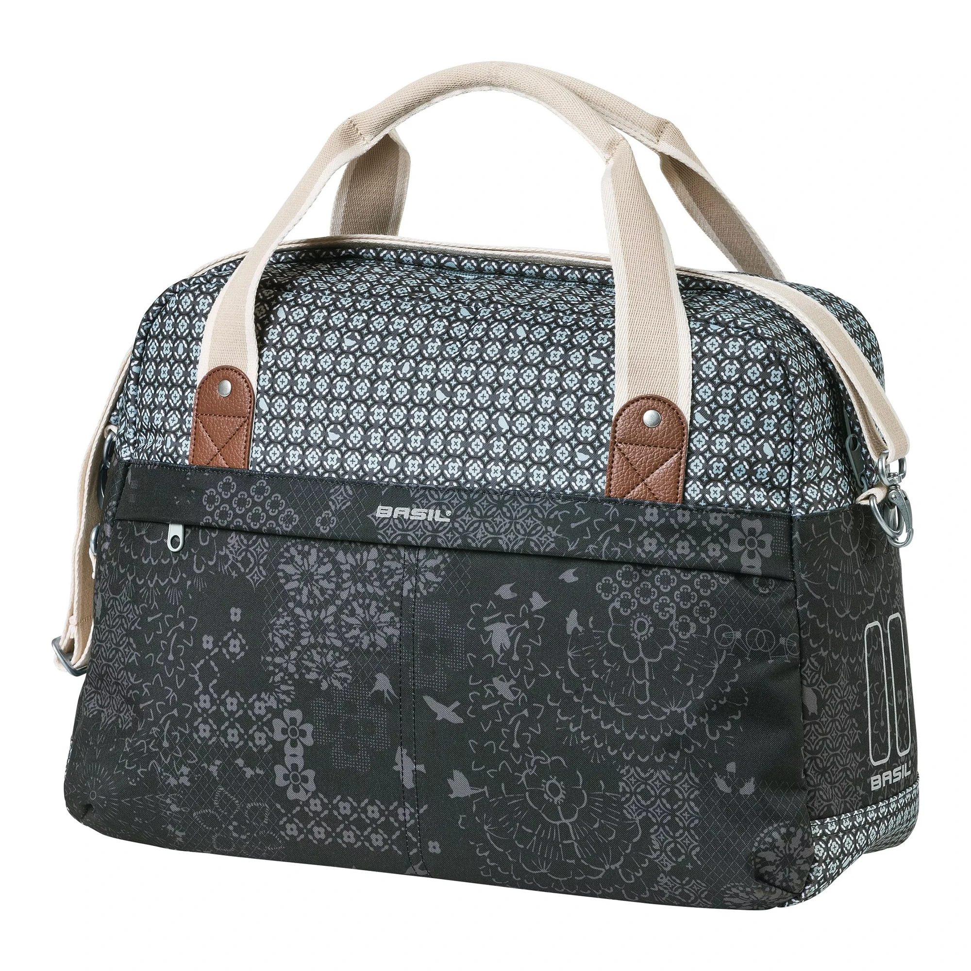 A Basil Bohème Carry All egy egyedi kerékpáros táska kiváló színben, látványos bohém mintával, amely igazán kiemeli a tömegből. Ez az igényesen megtervezett táska vízlepergető poliészterből készült, így minden időjárási körülmény között ideális választás. A 18 literes kapacitás bőséges helyet biztosít minden szükséges holmi számára. Bevásárláshoz vagy mindennapi ingázáshoz egyaránt kiváló, a Basil Bohème Carry All mindig megbízható társ lesz.