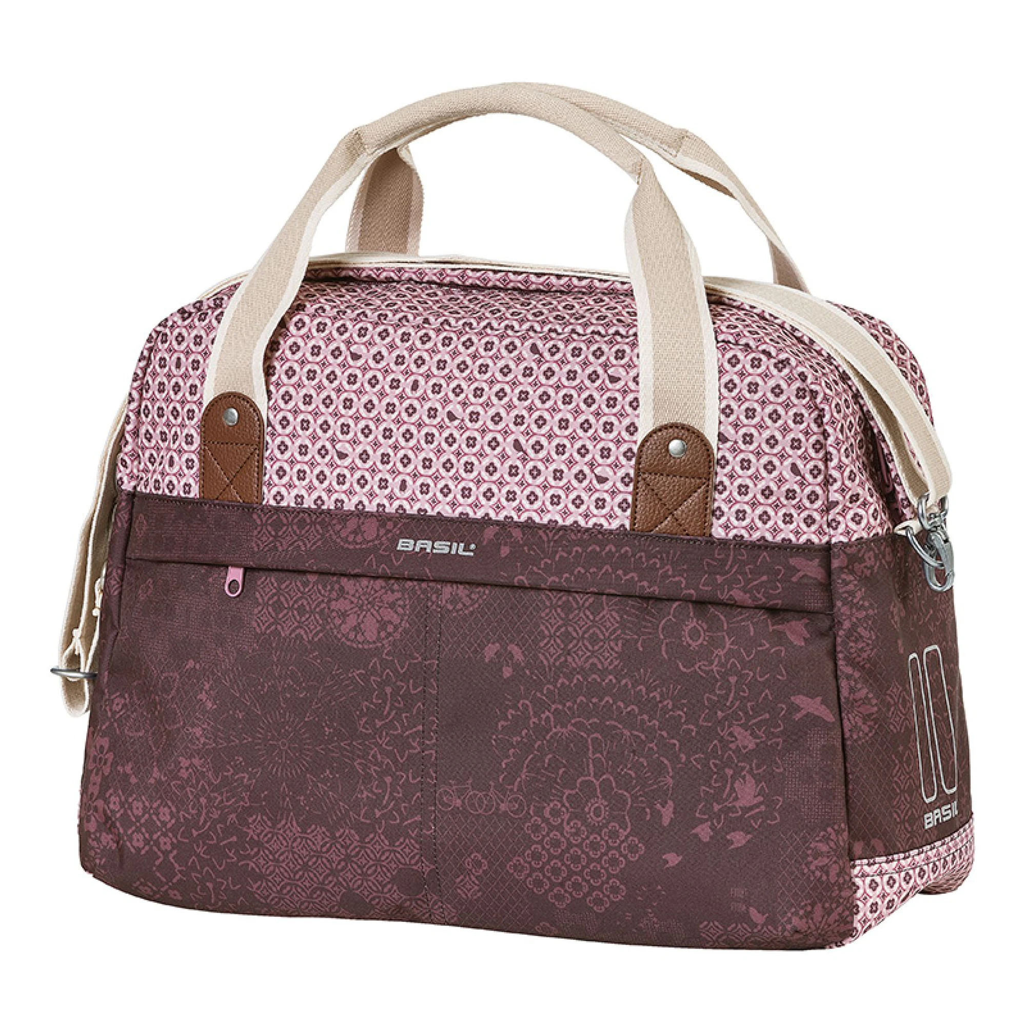 A Basil Bohème Carry All egy egyedi kerékpáros táska kiváló színben, látványos bohém mintával, amely igazán kiemeli a tömegből. Ez az igényesen megtervezett táska vízlepergető poliészterből készült, így minden időjárási körülmény között ideális választás. A 18 literes kapacitás bőséges helyet biztosít minden szükséges holmi számára. Bevásárláshoz vagy mindennapi ingázáshoz egyaránt kiváló, a Basil Bohème Carry All mindig megbízható társ lesz.