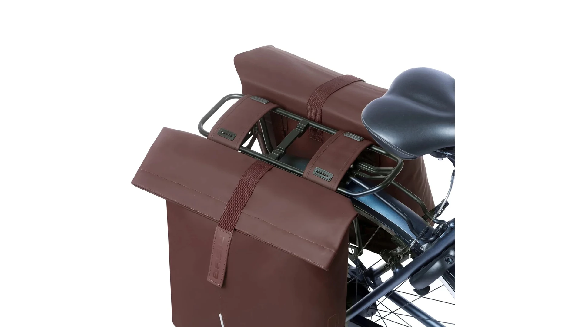 A Basil City dupla oldaltáskát egyszerűen rögzítheted a csomagtartóra a Universal Bridge rendszer segítségével. Ennek köszönhetően többféle rögzítési mód közül választhatsz: felszerelhető az előre rögzített pántokkal, a Basil DBS rendszerrel (levehető csomagtartólemezek), vagy adapterlemezzel, például MIK rendszerrel. Ezek a rendszerek külön vásárolhatók meg.