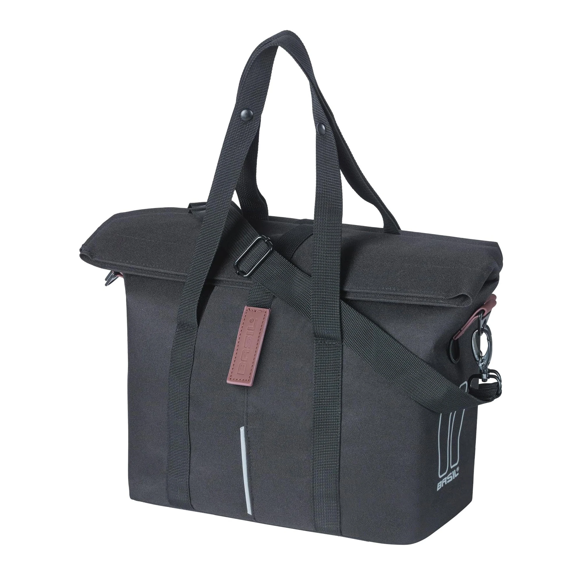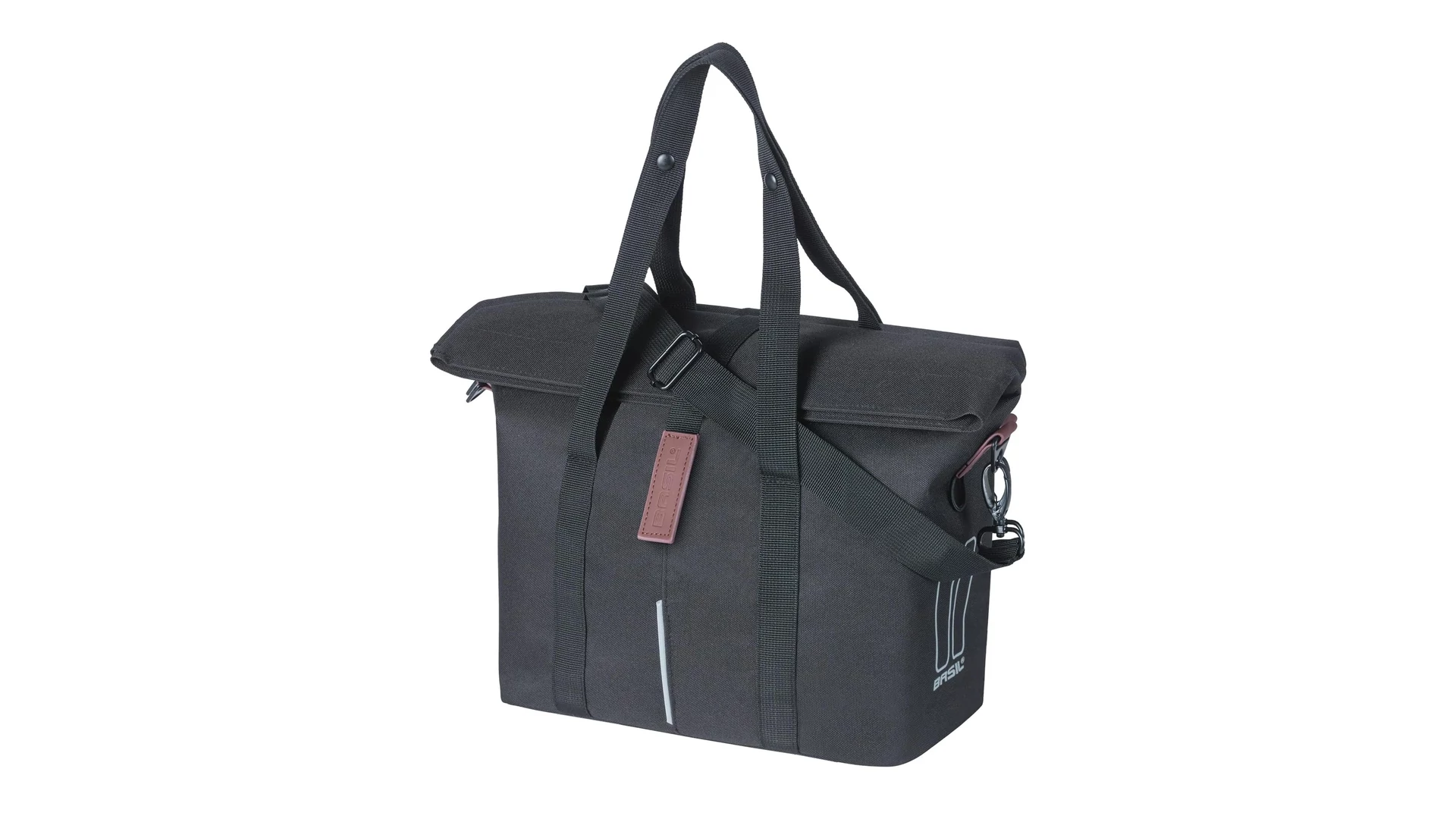 A kézitáska levehető vállpánttal rendelkezik, így könnyedén a válladon is hordhatod. Amikor kerékpárra ülsz, többféleképpen is rögzítheted. Ha magad előtt szeretnéd tartani, a Basil City kézitáskát a kormányra rögzítheted az előre felszerelt Basil KF adapterlemezzel (a rendszer külön vásárolható meg). Az előre felszerelt kampók segítségével a táskát a csomagtartóra is felakaszthatod. Ha gyorsan szeretnél táskát cserélni, használhatod a MIK rendszert is (a MIK adapterlemez külön vásárolható meg).