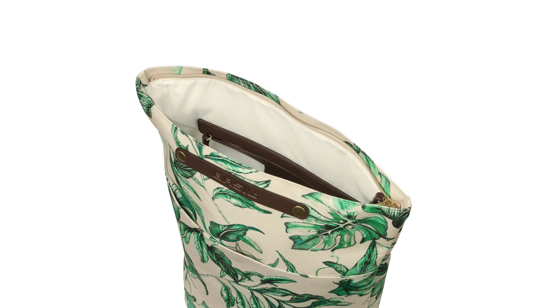 A bézs Basil Ever-Green hátizsák 14-19 literes űrtartalommal rendelkezik. A vízálló, feltekerhető zárás cipzárral rögzíthető. Belül egy cipzáras zseb található, elöl pedig egy extra zseb mágneses záródással. A jobb láthatóság érdekében a táska oldalai fényvisszaverő elemekkel vannak ellátva.