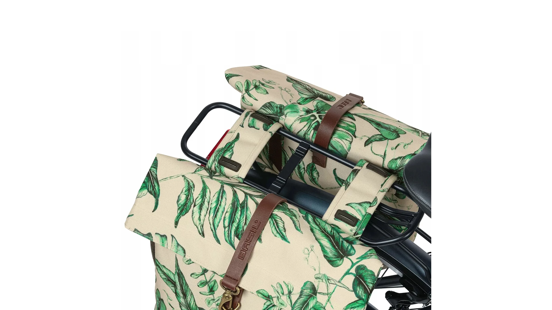A Basil Ever-Green dupla táska egyszerűen rögzíthető a csomagtartóra a Universal Bridge rendszer segítségével. Ennek köszönhetően többféle rögzítési mód közül választhatsz: használhatod az előre felszerelt pántokat, kombinálhatod a Basil DBS rendszerrel (levehető csomagtartó lemezek), vagy adapterlappal, például MIK rendszerrel. Mindkét rendszer külön vásárolható meg.