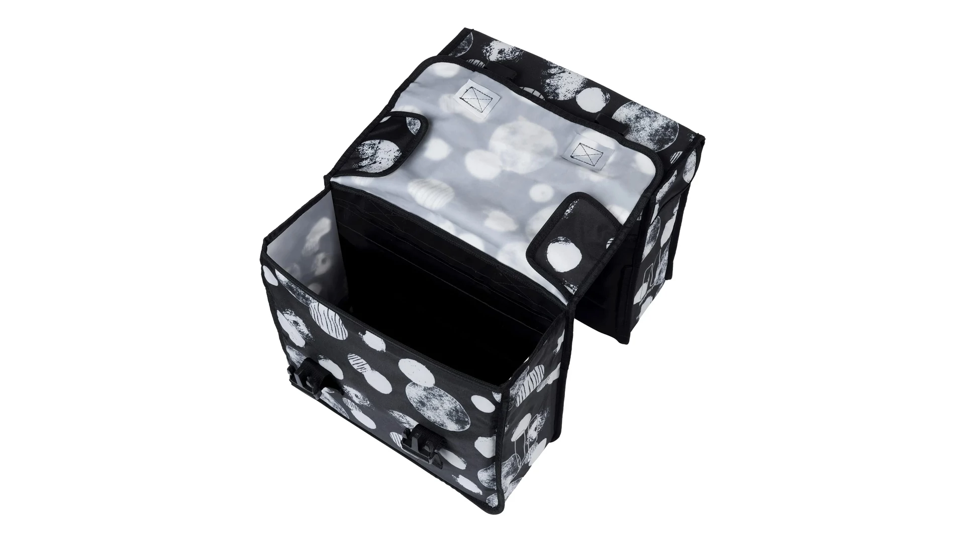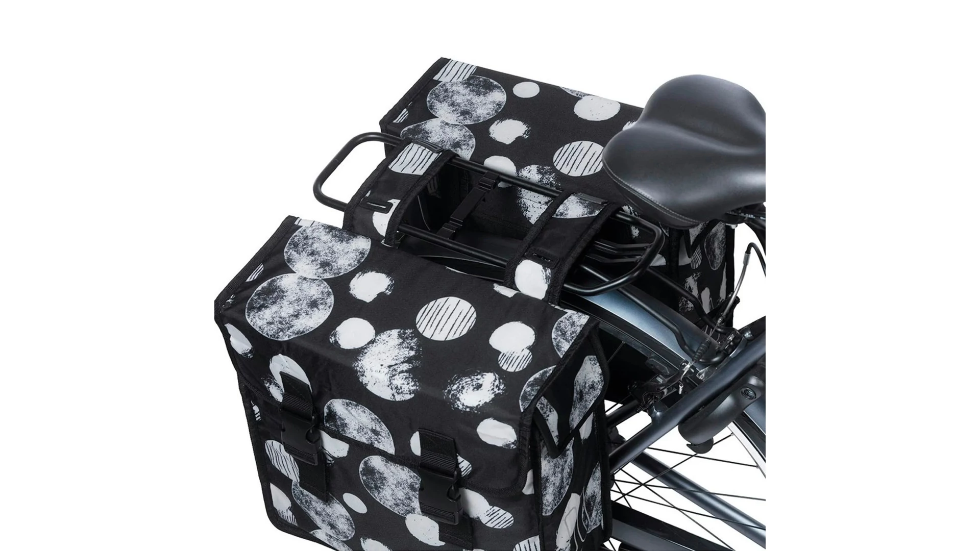 - a dupla táska praktikus pántokkal és rögzítőelemekkel egyszerűen felszerelhető a csomagtartóra