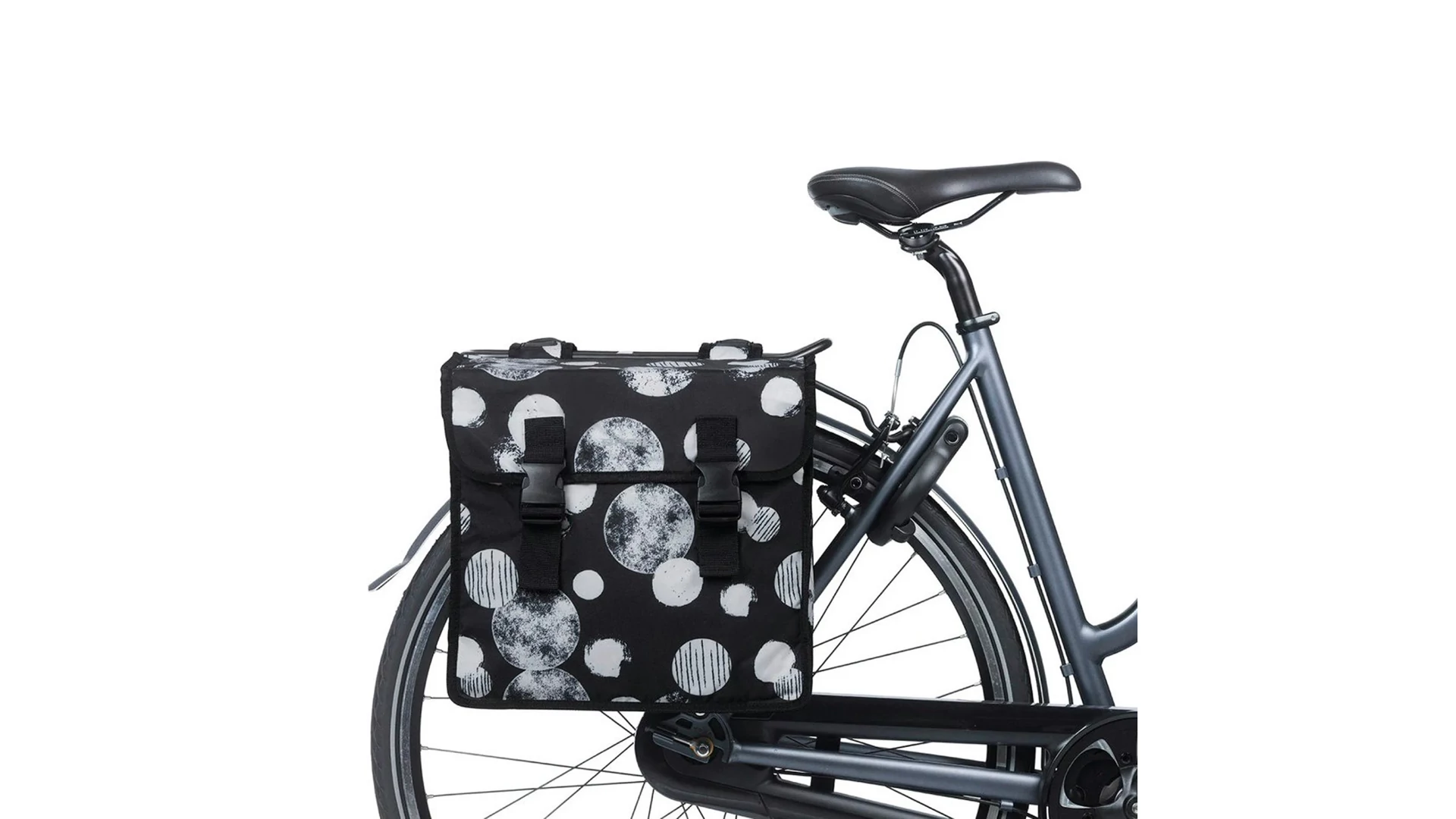 Miután bepakoltad a szükséges dolgokat, a praktikus patentos zárak és rögzítőpántok gondoskodnak arról, hogy minden biztonságosan a helyén maradjon, és a táska könnyen rögzíthető legyen a csomagtartóra. A tetején két rögzítési pont található, amelyekhez például LED lámpát, rögzítőket, gyerekülést vagy rugós csipeszt is csatlakoztathatsz. A dupla fényvisszaverő elemek növelik a láthatóságot sötétben, így hozzájárulnak a biztonságos közlekedéshez. A Basil kínálatában számos további praktikus kiegészítőt is találsz – érdemes felfedezni a teljes választékot.