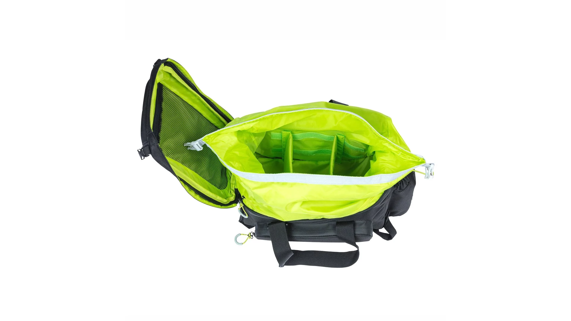 A tépőzáras rögzítés segítségével a táska könnyen a kerékpár csomagtartójára rögzíthető. Ez a sportos csomagtartó táska MIK vagy Racktime adapterlemezekkel is használható, azonban ezek a lemezek nem tartoznak a csomaghoz. A táskához levehető vállpánt is tartozik.