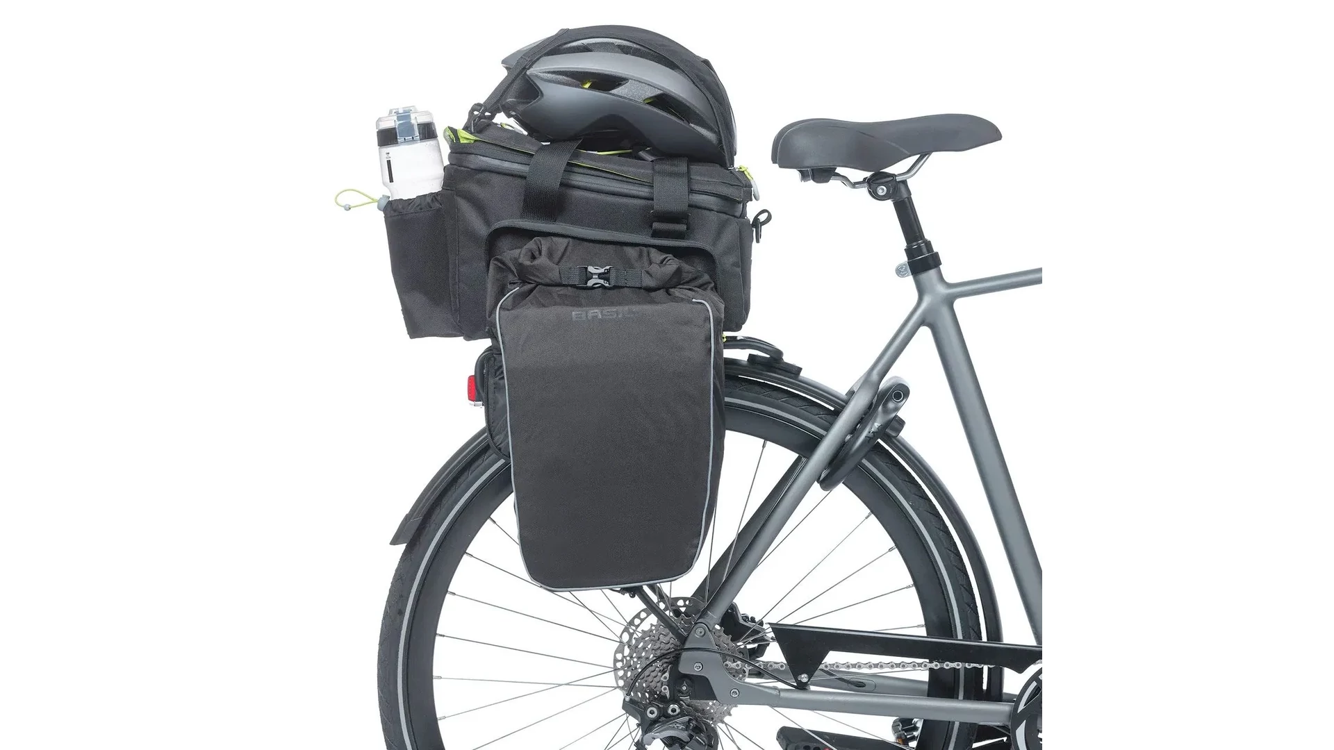 Olyan táskát keresel, amelynél minden apró részletre gondoltak? Akkor a Basil Miles XL Pro csomagtartó táska tökéletes választás. Ez a sportos táska vízálló, és számos praktikus megoldással rendelkezik. Két vízálló, kihajtható oldalzsebbel készült, a felső rekesz pedig bővíthető. Az alap 9 literes kapacitás akár lenyűgöző, 36 literes térfogatra is növelhető.