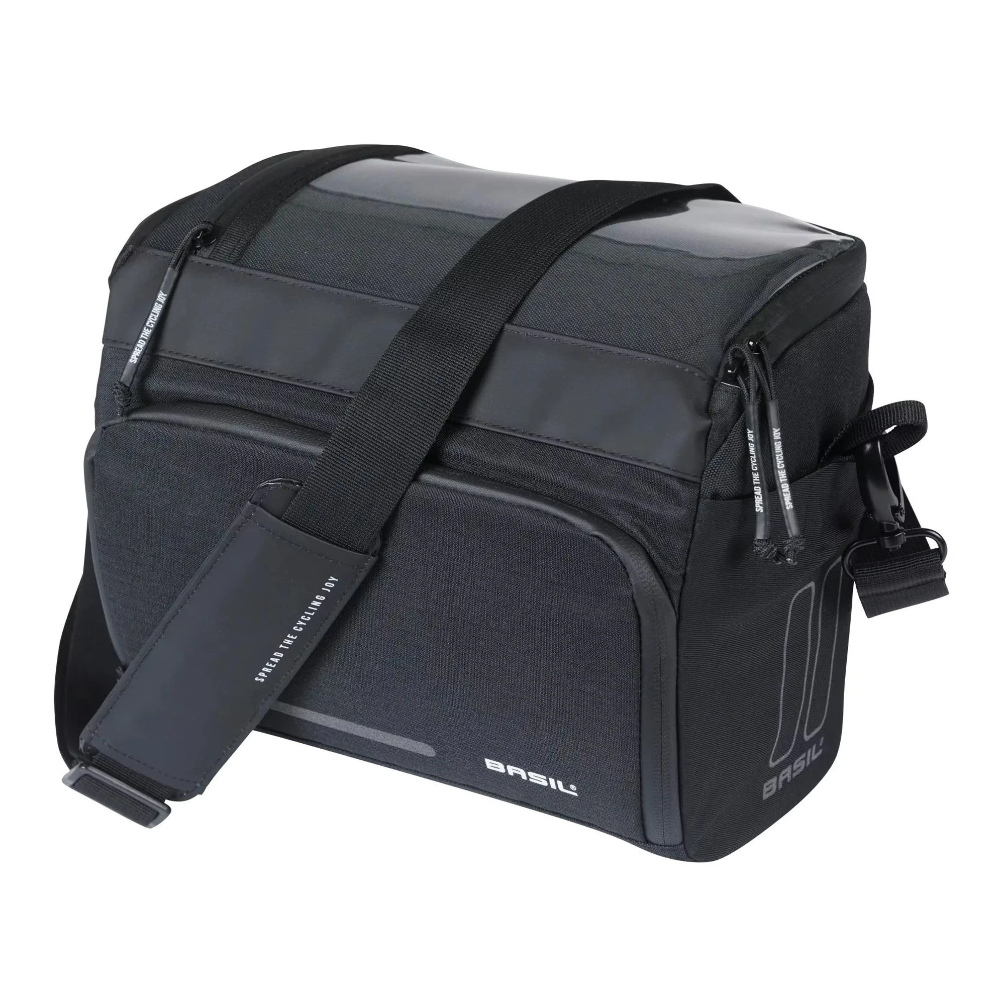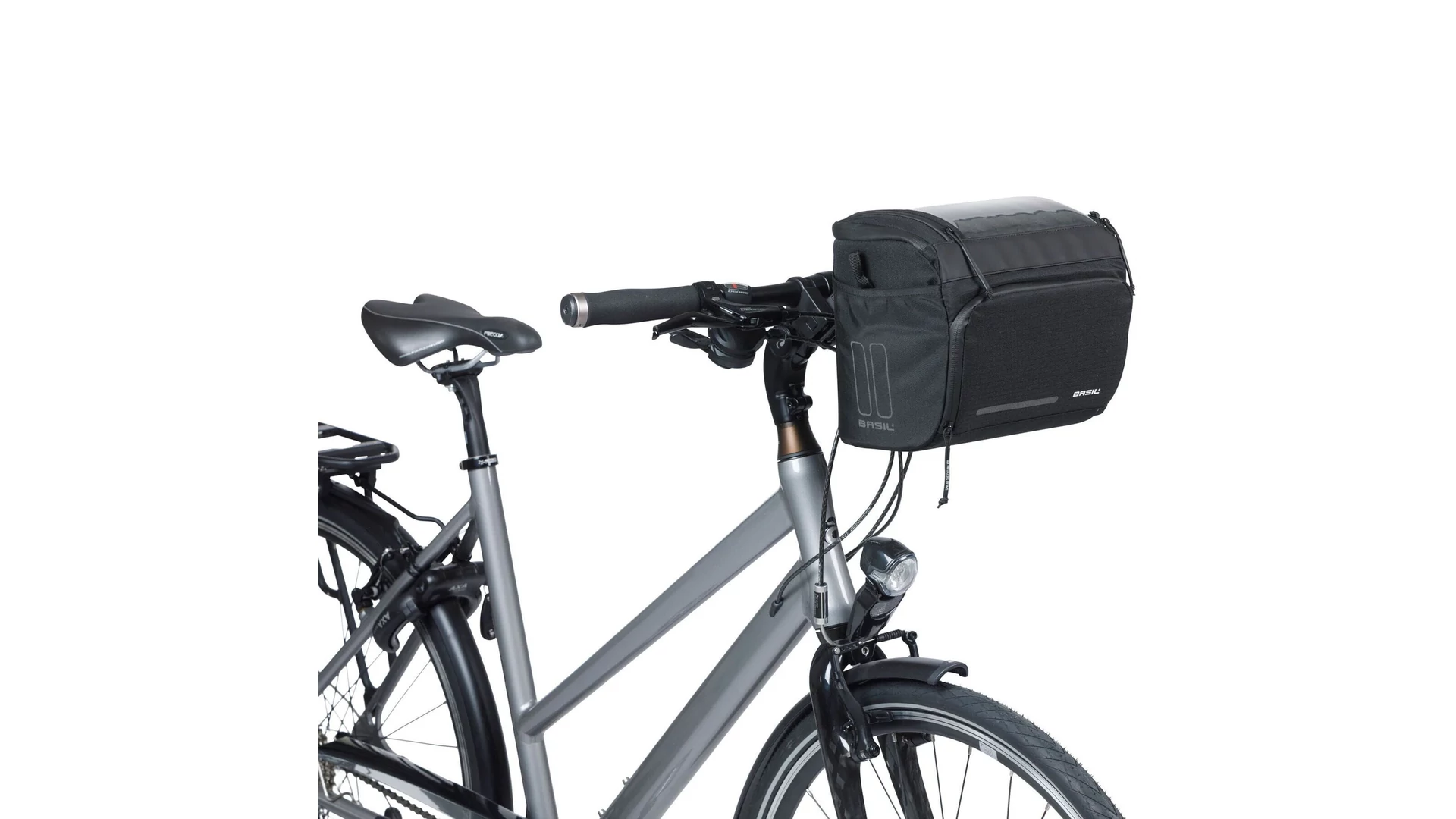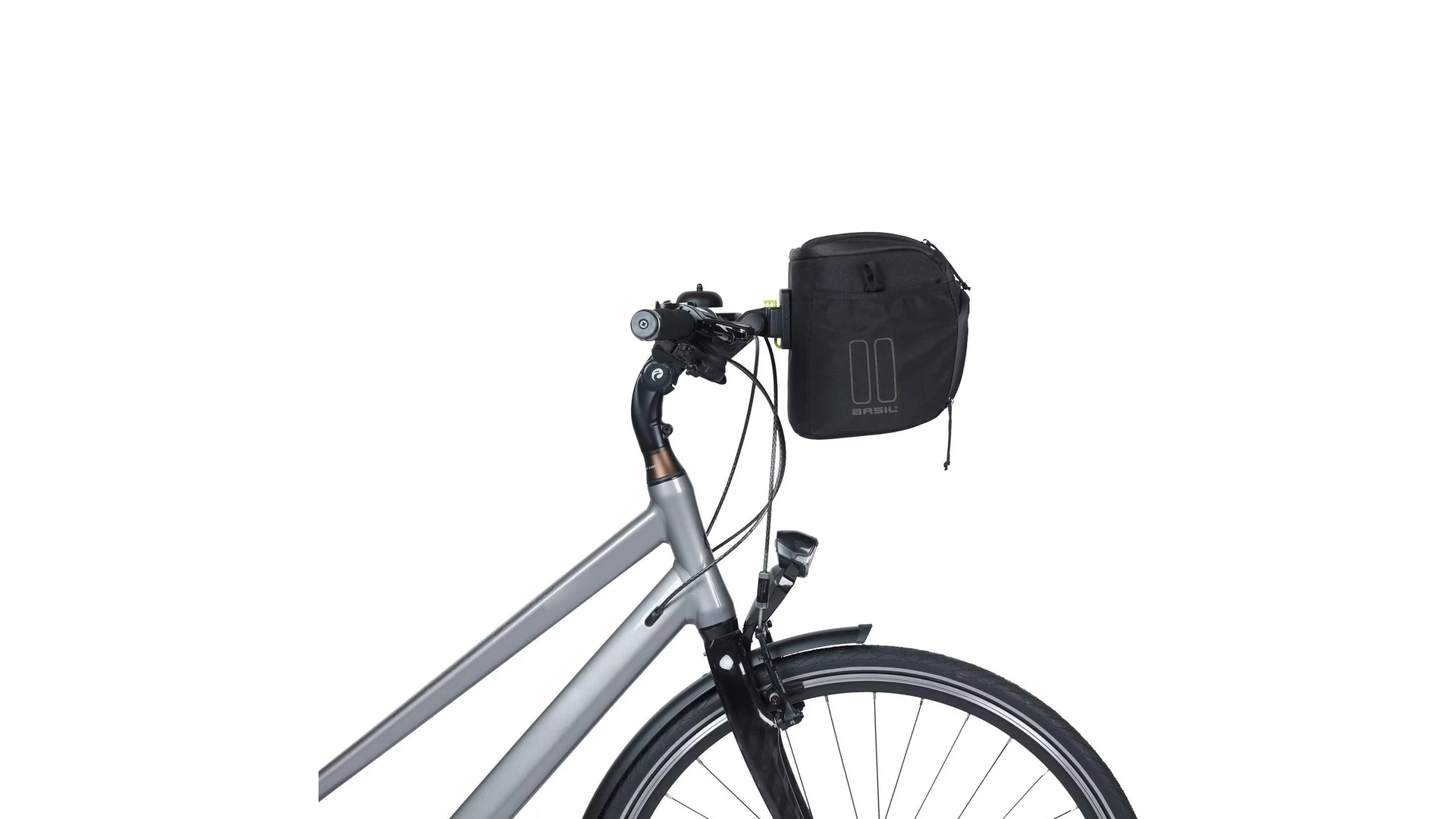A kényelmes vállpántnak és fogantyúnak köszönhetően a táskát könnyedén magaddal viheted, amikor megállsz pihenni. A táska stílusos fekete színben kapható, és fényvisszaverő elemekkel is rendelkezik, így jobban látható vagy a forgalomban. A táska előre felszerelt Basil KF adapterlemezzel érkezik, amely lehetővé teszi a gyors és egyszerű rögzítést a kormányra, valamint a könnyű levételt.