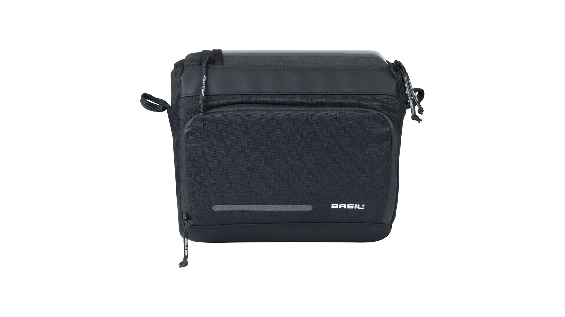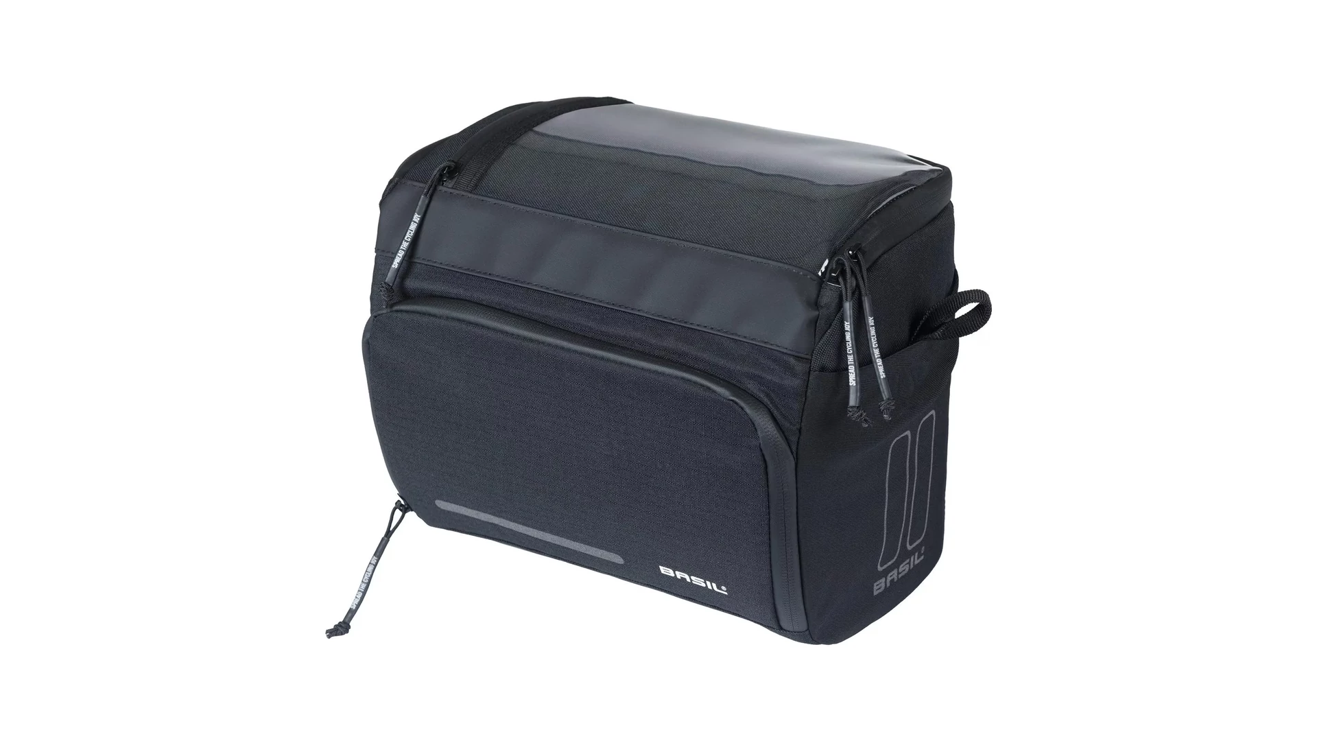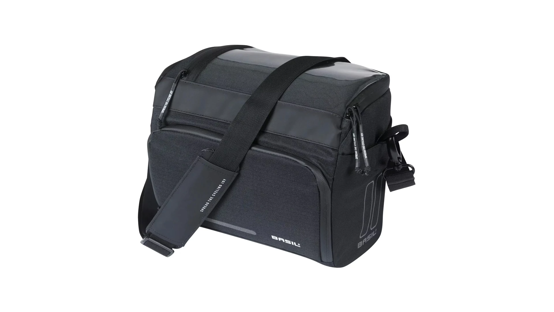 A kényelmes vállpántnak és fogantyúnak köszönhetően a táskát könnyedén magaddal viheted, amikor megállsz pihenni. A táska stílusos fekete színben kapható, és fényvisszaverő elemekkel is rendelkezik, így jobban látható vagy a forgalomban. A táska előre felszerelt Basil KF adapterlemezzel érkezik, amely lehetővé teszi a gyors és egyszerű rögzítést a kormányra, valamint a könnyű levételt.