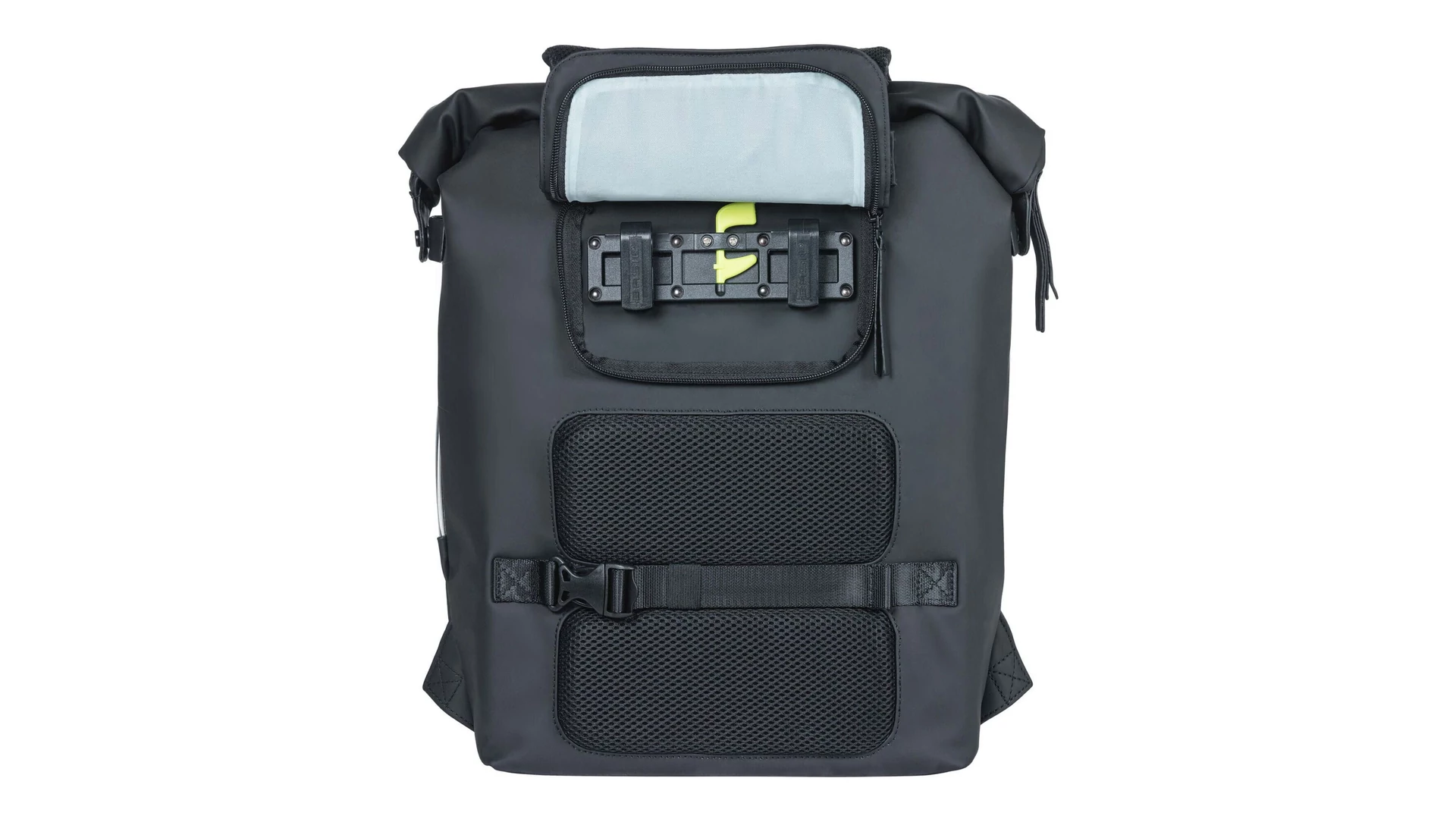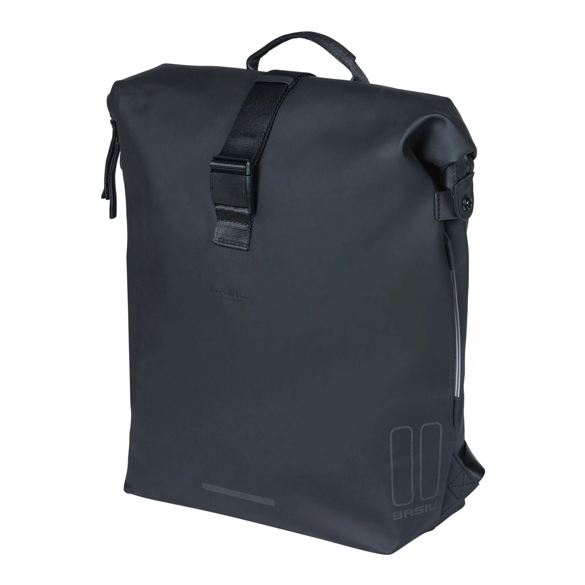 Városi kalandra vágysz? Akkor vidd magaddal a Basil SoHo kerékpáros táskát, és minden helyzetre felkészülten indulhatsz útnak. Ez a fekete kerékpáros táska számos okos funkcióval rendelkezik. Például beépített LED csíkkal* van ellátva, amely sötétben is jobban láthatóvá tesz. Emellett a táska vízálló (IPX3), így egy csepp víz sem jut a belsejébe. A hegesztett varrások és a feltekerhető zárás is hozzájárulnak ehhez. A cipzár a táska oldalán fut, amely matt PU anyagból készült, és rendkívül puha tapintású**.