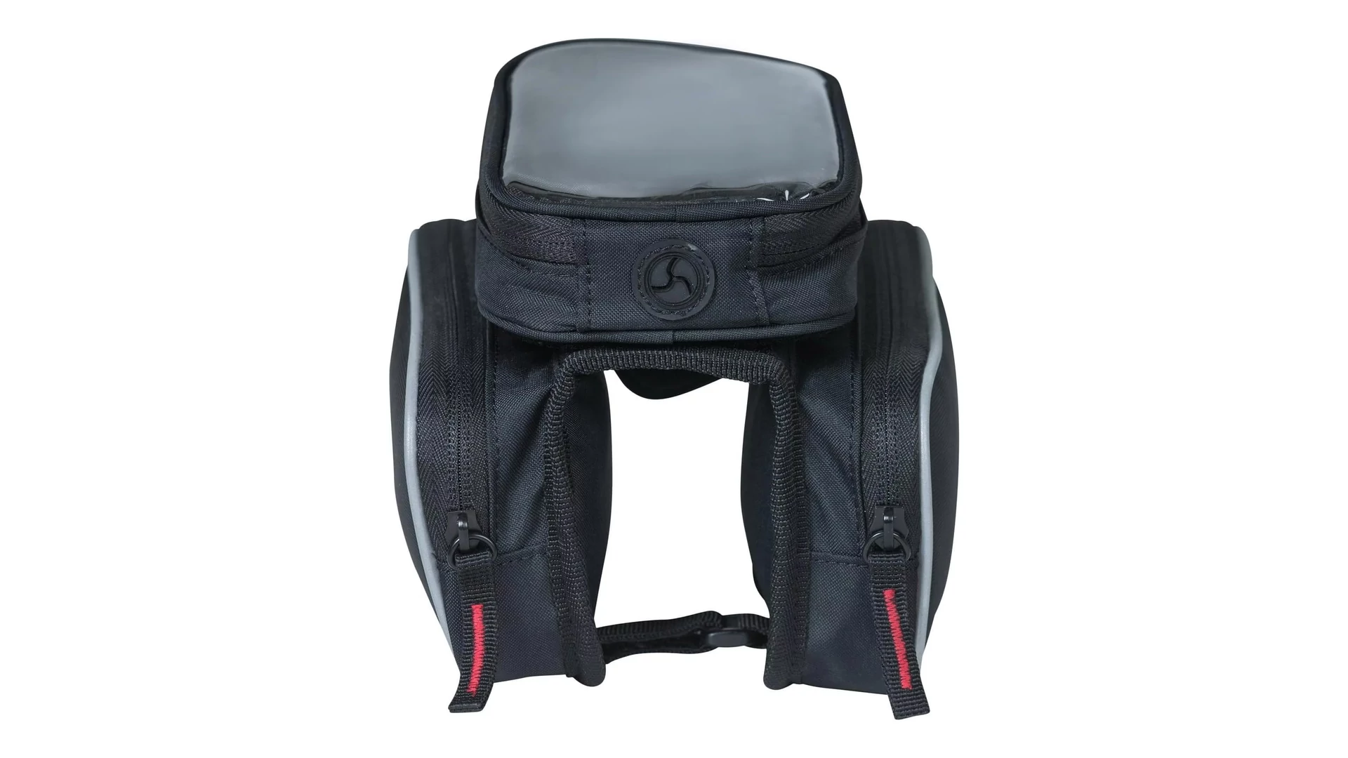 A táska tépőzáras pántok segítségével könnyen rögzíthető a kerékpár felsőcsövére. Sportos kialakítású, és vízlepergető poliészterből készült. A két oldalsó rekesz mindegyike saját belső zsebbel rendelkezik, így könnyebb rendszerezni a benne tárolt tárgyakat.