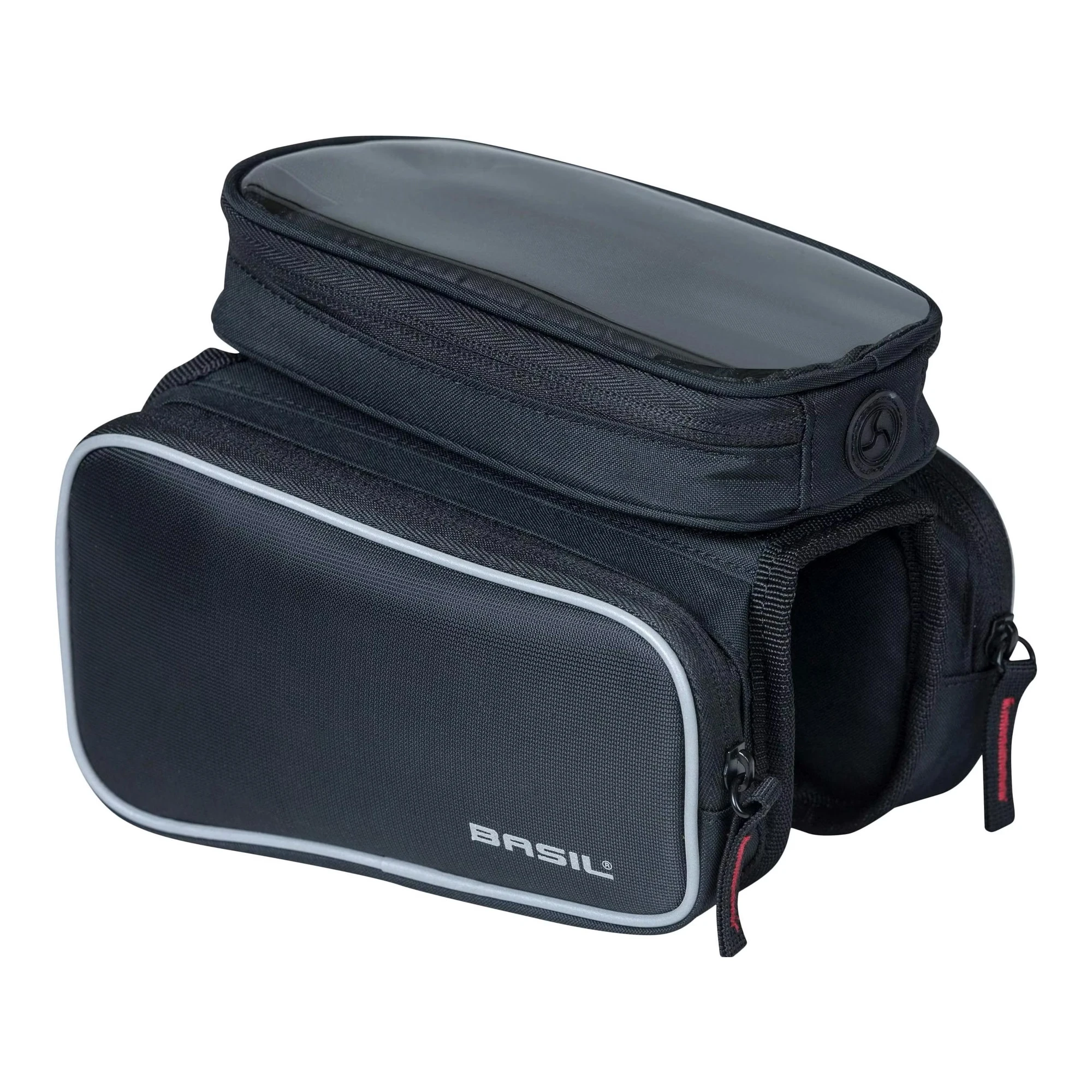 A váztáska levehető felső zsebbel is rendelkezik, amelyben okostelefon tárolható. A tapintható, átlátszó ablaknak köszönhetően a telefon könnyen használható, és egy nyílás is található rajta a fülhallgató csatlakoztatásához. A táskán található fényvisszaverő anyag segít abban, hogy sötétben jobban látható legyél a forgalomban.