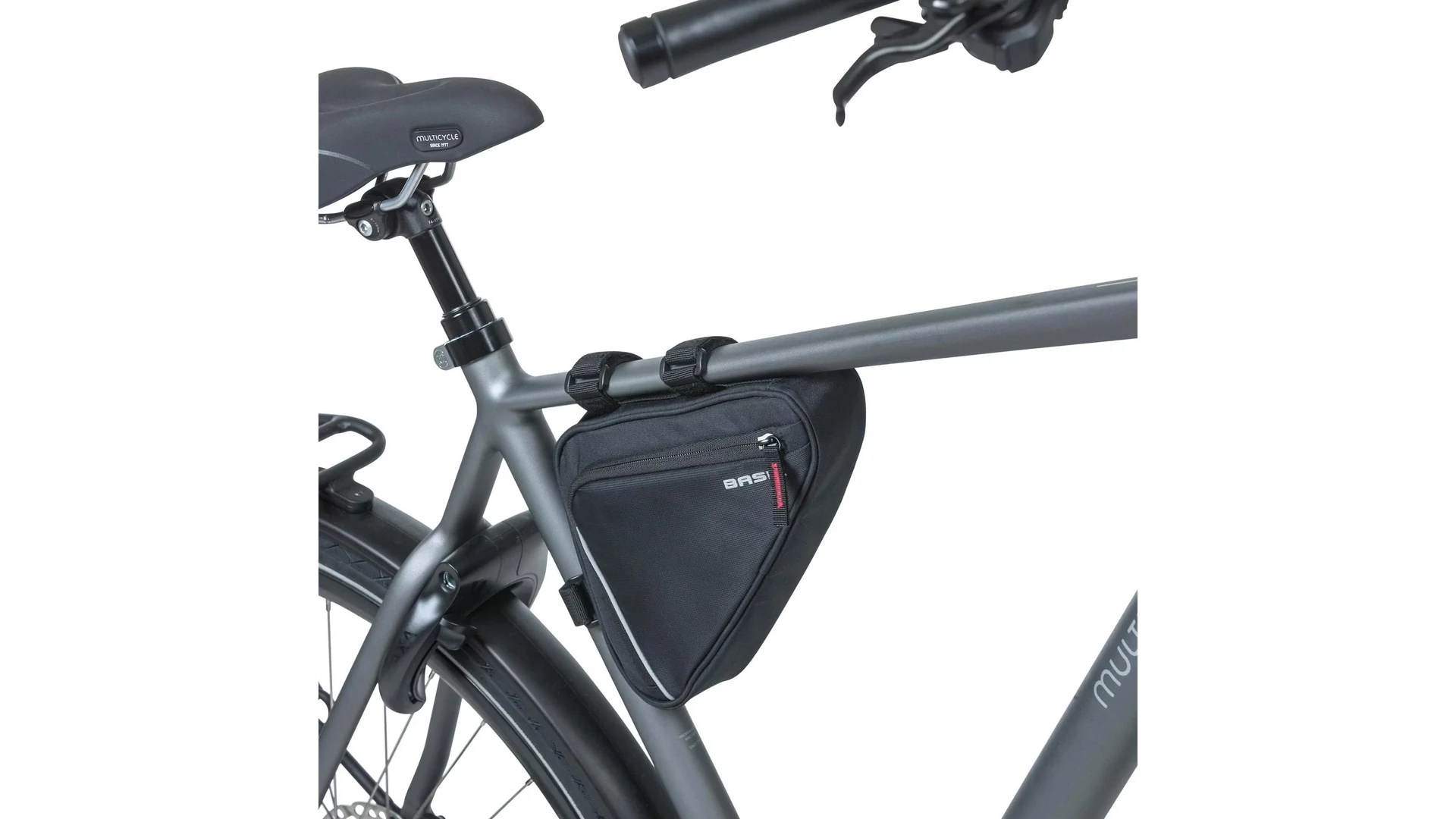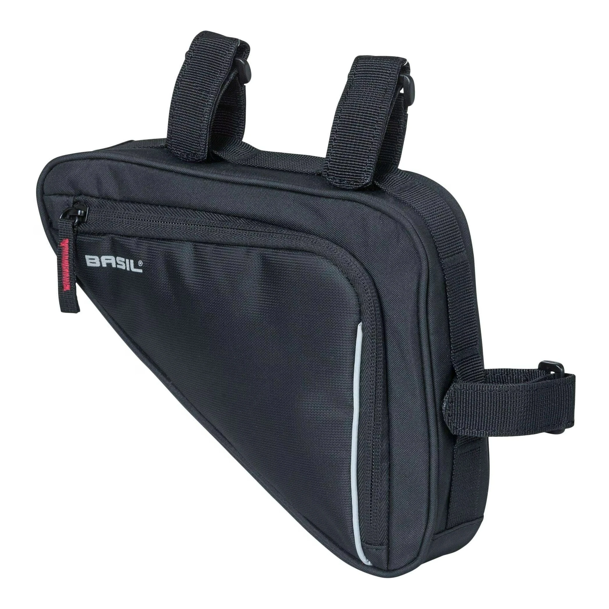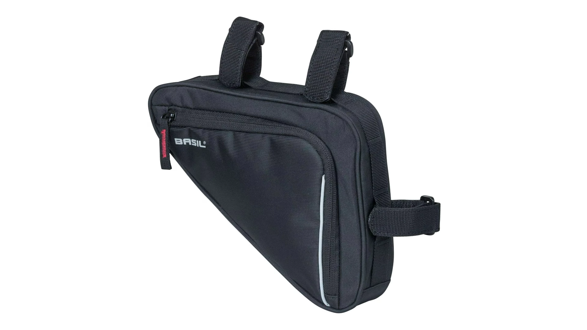 Azok számára, akik szeretnek kerékpározni, a Basil Sport Design Triangle váztáska egy igazán praktikus kerékpáros táska. Funkcionális kialakítású és jól tagolt belső térrel rendelkezik. A tépőzáras pántok segítségével könnyedén rögzíthető a kerékpár vázára. A fekete táska vízlepergető poliészterből készült, és egy fő rekesszel rendelkezik, amelyben hálós belső zseb és egy karabiner található.