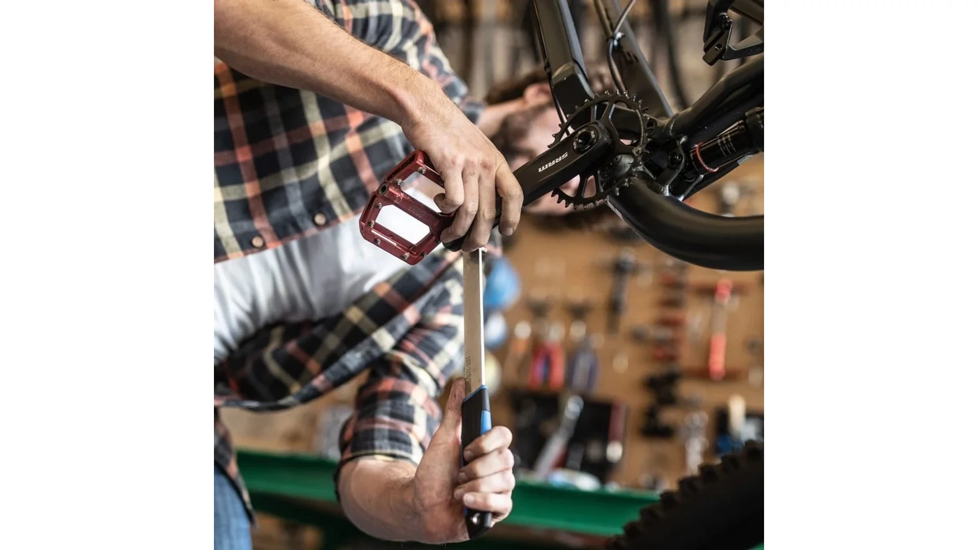 - Ergonomikus kétoldalú imbuszos pedálkulcs.