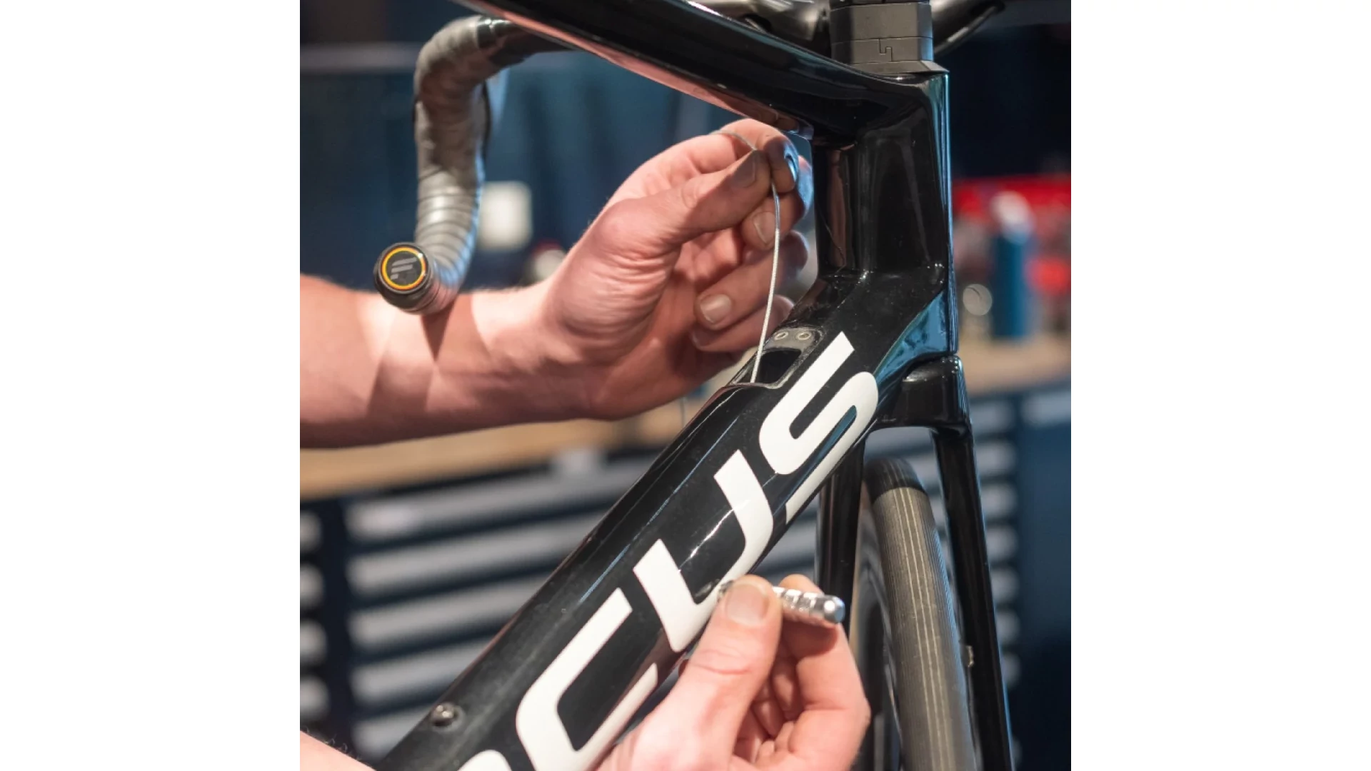 - Alkalmas váltó- / fékkábelekhez, külső kábelekhez, hidraulikus tömlőkhöz és Di2 vezetékekhez.