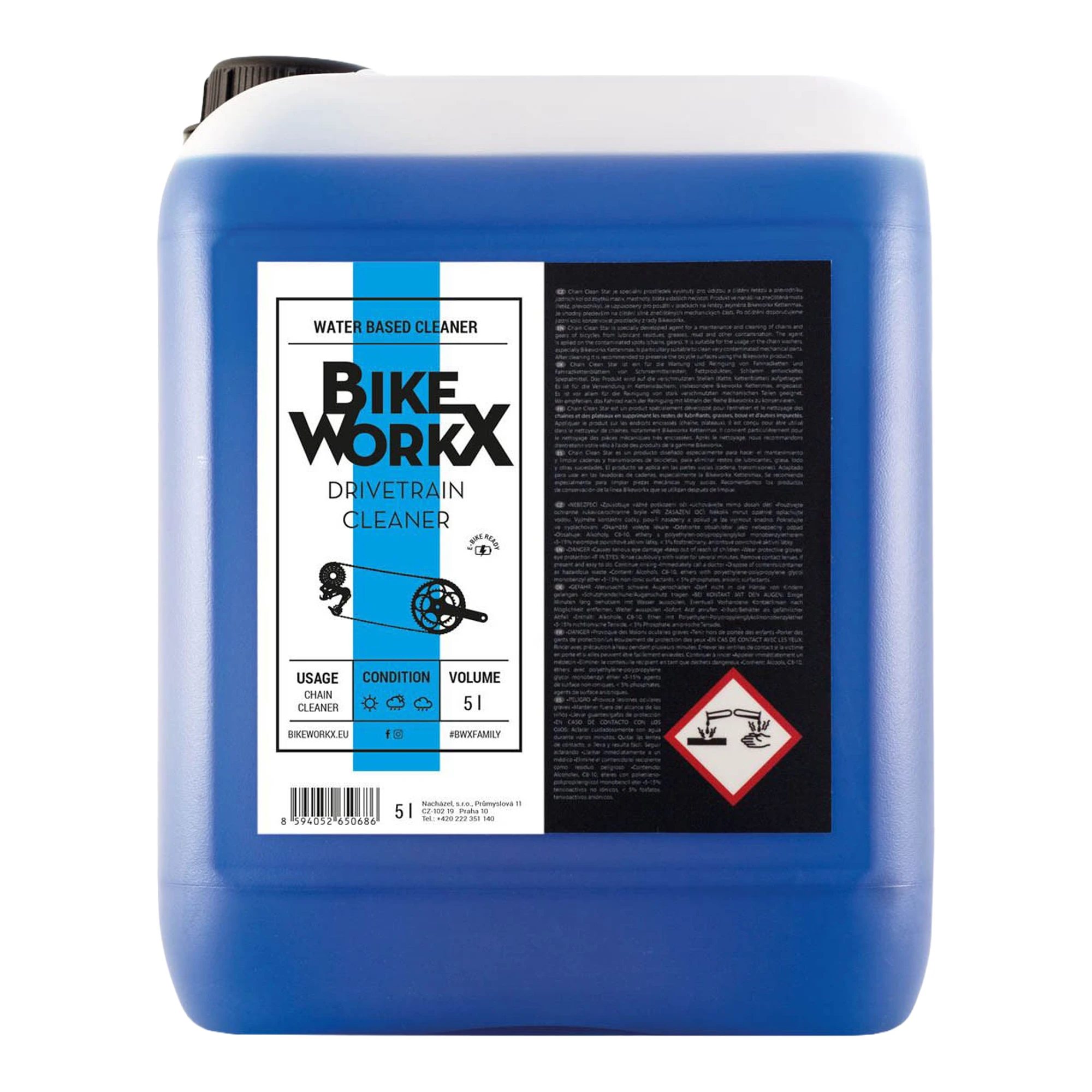 A Drivetrain Cleaner közvetlenül a szennyezett felületre permetezve használható, és lánctisztító készülékekhez is alkalmas. A tisztítás után erősen ajánlott a kezelt felületek ápolása megfelelő Bikeworkx termékekkel.