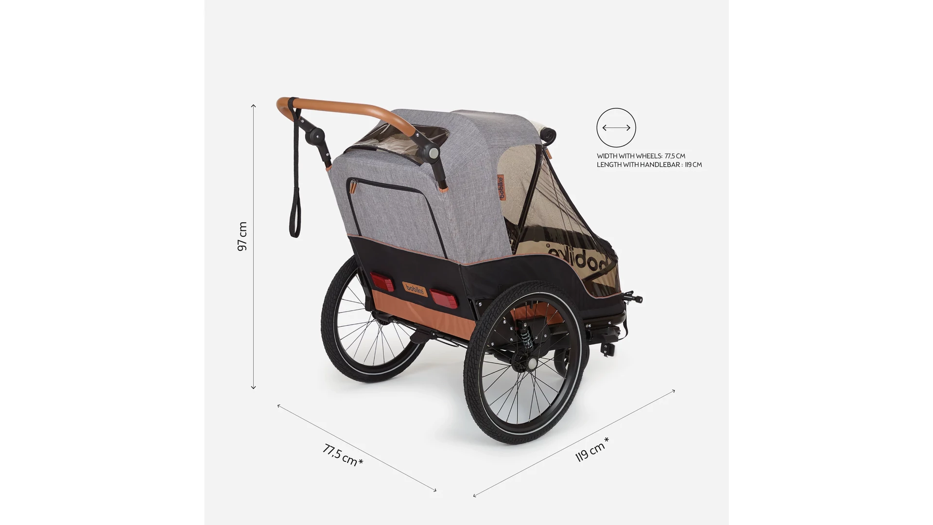 Utánfutóként való használathoz egyszerűen csatlakoztasd a kerékpár hátsó kerekéhez a mellékelt rögzítőrendszerrel, vagy válts könnyedén babakocsi módra, és indulj sétálni a gyerekekkel.