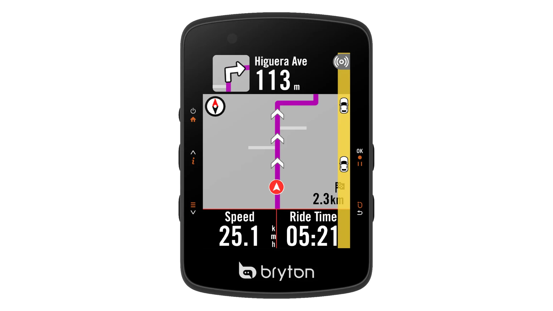 Ha ANT+ hátsó nézetű radar rendszert csatlakoztatsz, a Rider 650 akár 150 méterről észleli a hátulról közeledő járműveket. A kijelző jobb oldalán színes jelzések és hangjelzések figyelmeztetnek a forgalomra – így mindig tudni fogod, mi jön mögötted.
