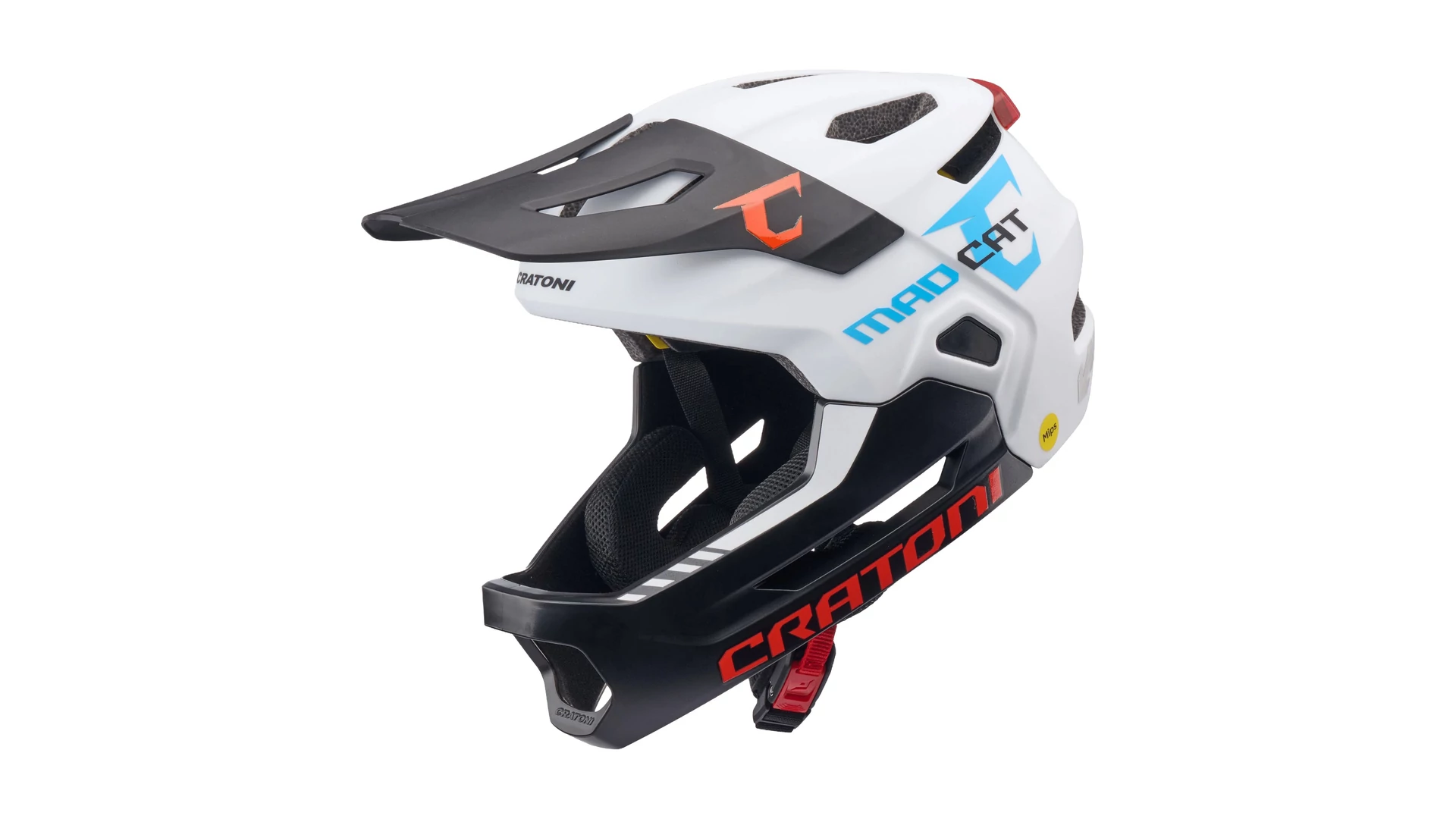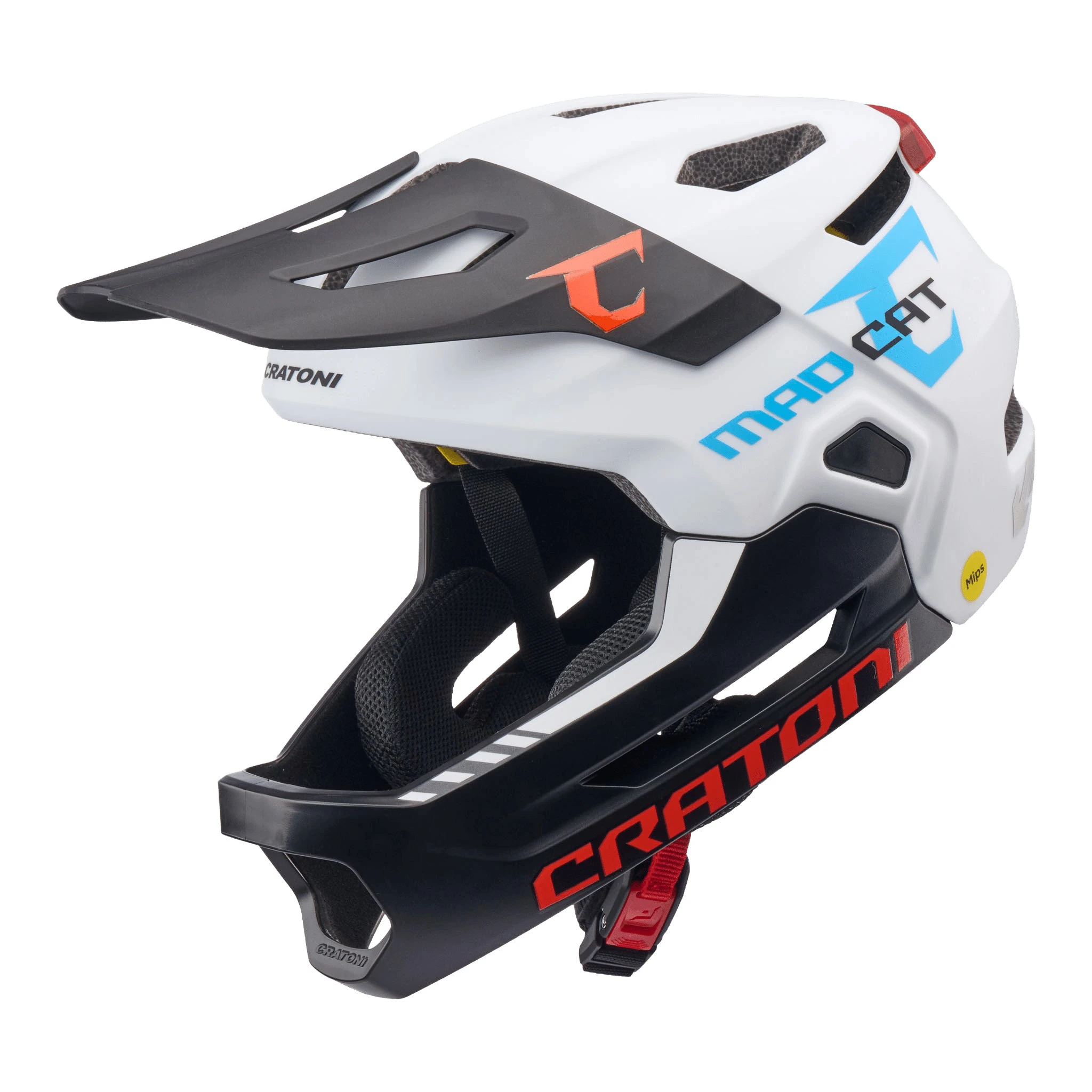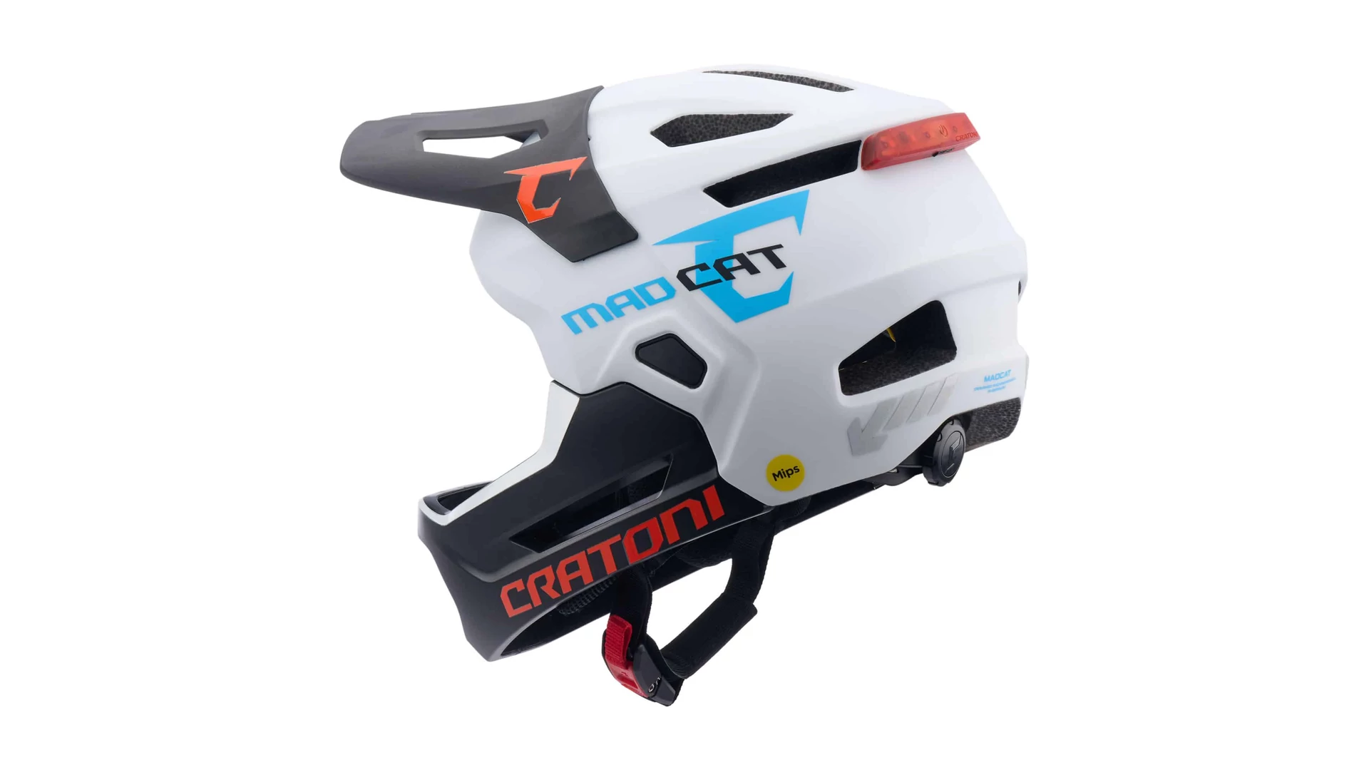 A CRATONI Madcat MIPS kerékpáros sisak egy prémium védelmet nyújtó full-face modell, amely ideális választás fiatal, sportos bringások számára. A MIPS technológia és a megnövelt hátsó védelem fokozott biztonságot biztosít minden helyzetben. A szerszám nélkül eltávolítható állvédő lehetővé teszi a sokoldalú használatot, legyen szó lejtőzésről vagy nyugodtabb tekerésről. Az integrált, USB-C-vel tölthető hátsó lámpa növeli a láthatóságot.