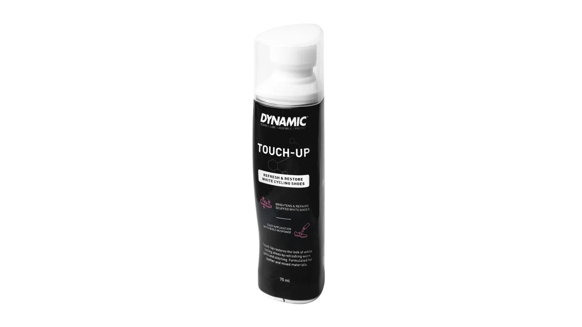 A Touch-Up kifejezetten a fehér kerékpáros cipők megjelenésének felfrissítésére és helyreállítására készült. Bőr, szintetikus és vegyes anyagokon egyaránt alkalmazható.