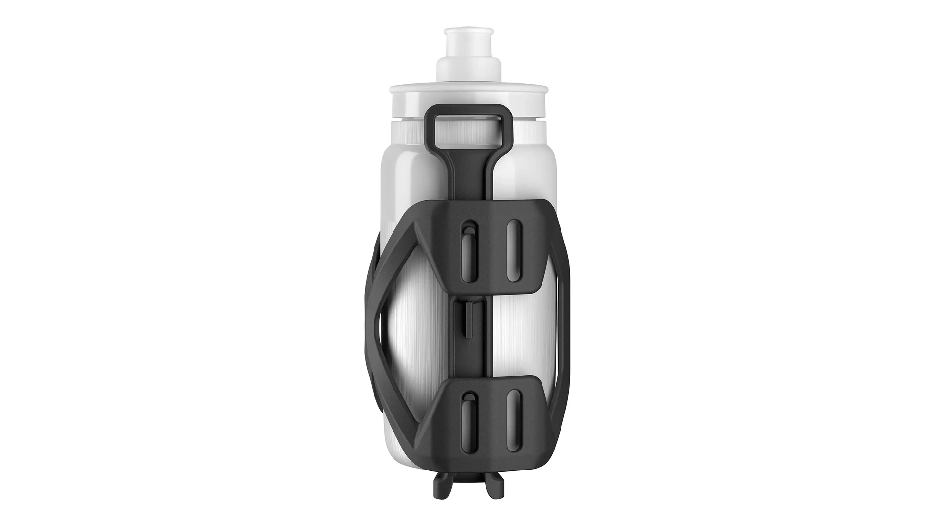 A magasságban és oldalirányban is állítható hátsó rész stabil rögzítést garantál a vázon, miközben lehetőséget ad a kulacs behelyezési szögének személyre szabására.