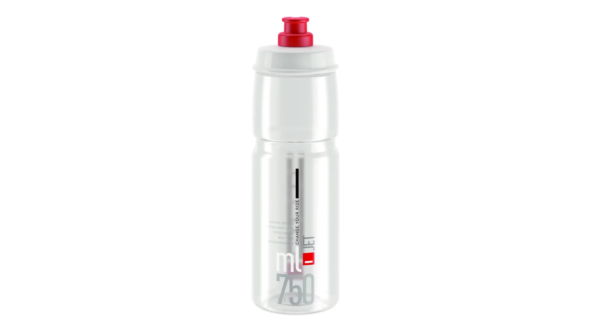 A Jet négy különböző méretben érhető el (350 ml, 550 ml, 750 ml és 950 ml), hogy minden kerékpáros folyadékpótlási igényét lefedje. A kulacs az Elite termékek legjobb tulajdonságait ötvözi – könnyű súly, bőséges folyadékáramlás és tiszta ízű víz –, miközben környezettudatosabb műanyag felhasználásával csökkenti a környezet terhelését.