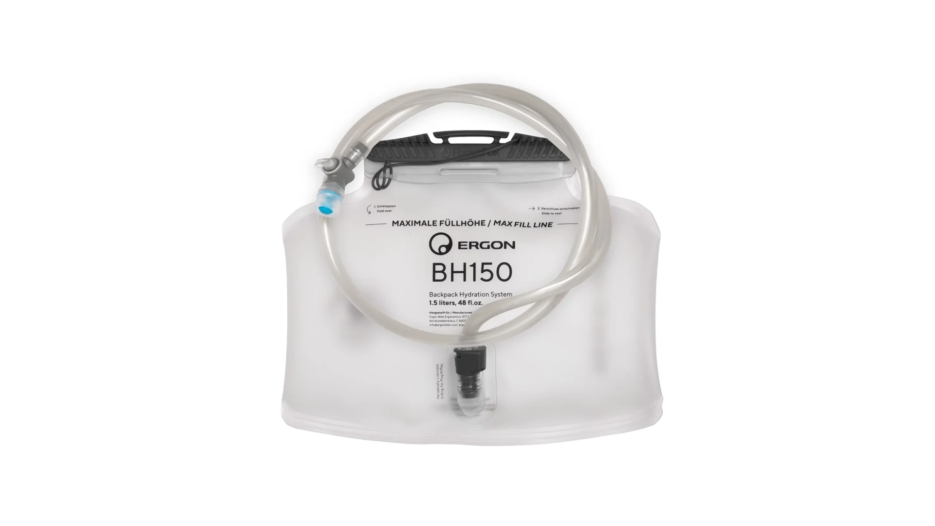 A BH150 kiváló választás vízszintesen elhelyezhető hidratációs tartályokhoz. A HydraPak®-kal együttműködésben fejlesztették ki, és a legtöbb kerékpáros hátizsákkal kompatibilis. Tartósságának és megbízhatóságának köszönhetően ez az 1.5 literes tartály ideális hidratációs megoldás rövidebb, gyors körökhöz.