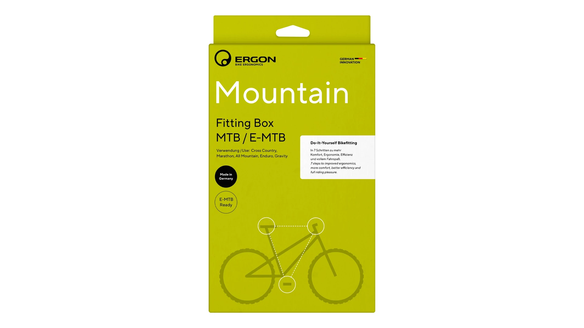 Az MTB / E-MTB Fitting Box több éves kutatás eredménye, amelyet az Ergon ergonómiai szakértője, Dr. Kim Tofaute fejlesztett ki, aki a biomechanika és sportergonómia specialistája. Lépésről lépésre felépített útmutatója a profi bike fitting módszereit alakítja át egy könnyen követhető, mindenki számára érthető beállítási útmutatóvá. Több ezer kerékpárossal szerzett tapasztalata és mély ergonomiai tudása alapján segít elérni az ideális beállítást – akár otthon, saját környezetedben is.