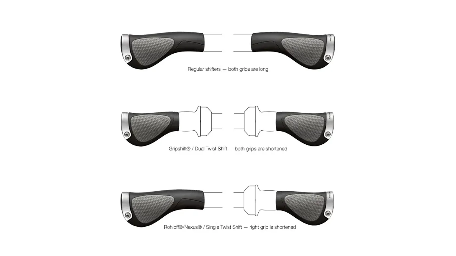 A GP sorozat egyes modelljei – köztük a GP1 – különböző változatokban is elérhetők a különféle váltórendszerekhez. Hagyományos váltás esetén mindkét markolat azonos hosszúságú. Gripshift® vagy Dual-Twist rendszereknél két rövidített markolatot kapunk, míg Rohloff®, Nexus® és Single-Twist rendszereknél csak a jobb oldali markolat rövidebb, hogy helyet biztosítson a váltómechanikának.