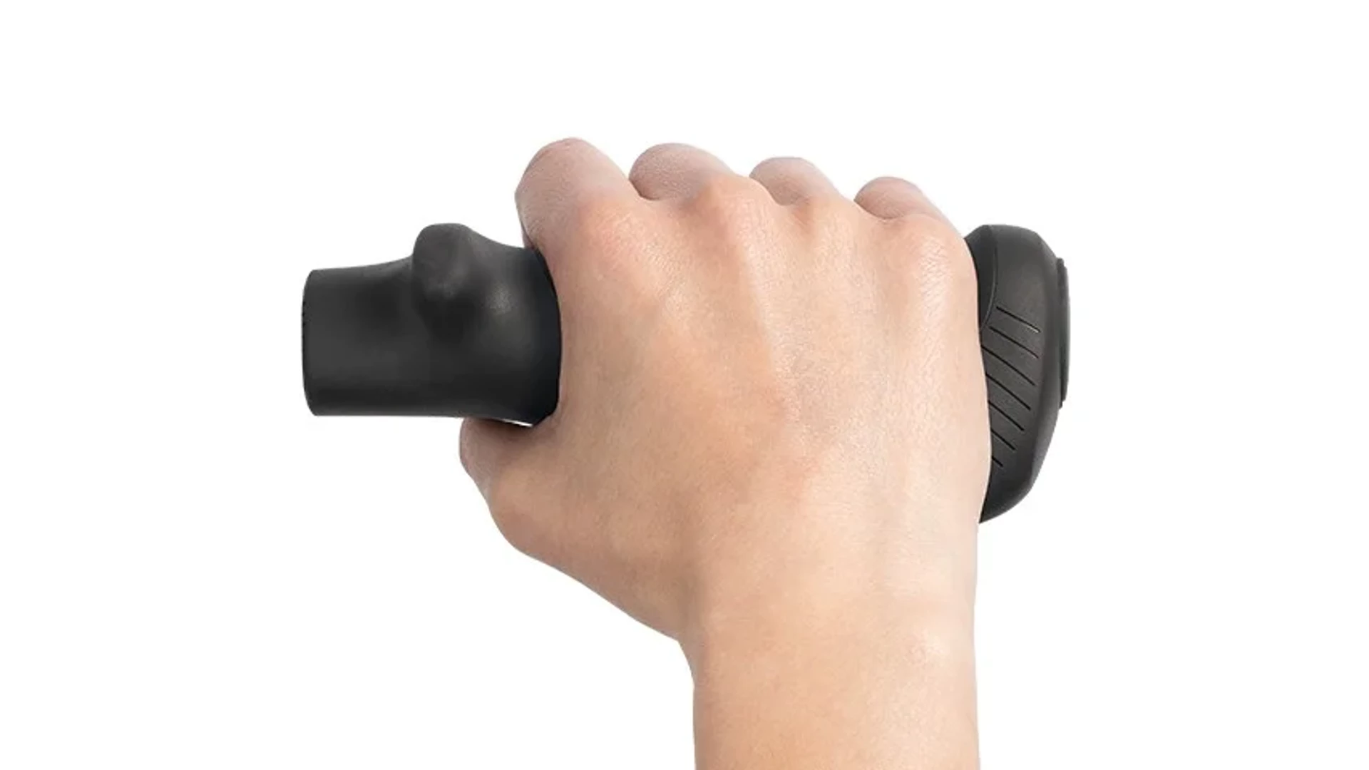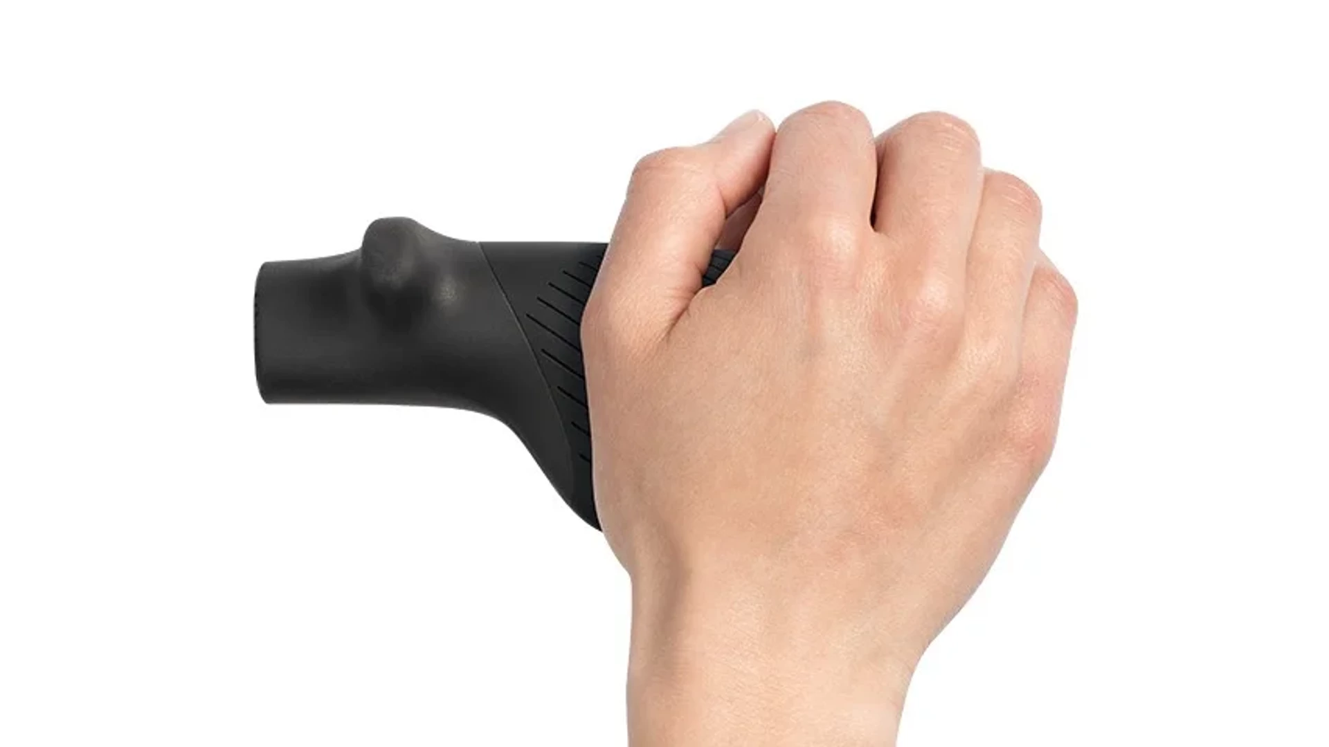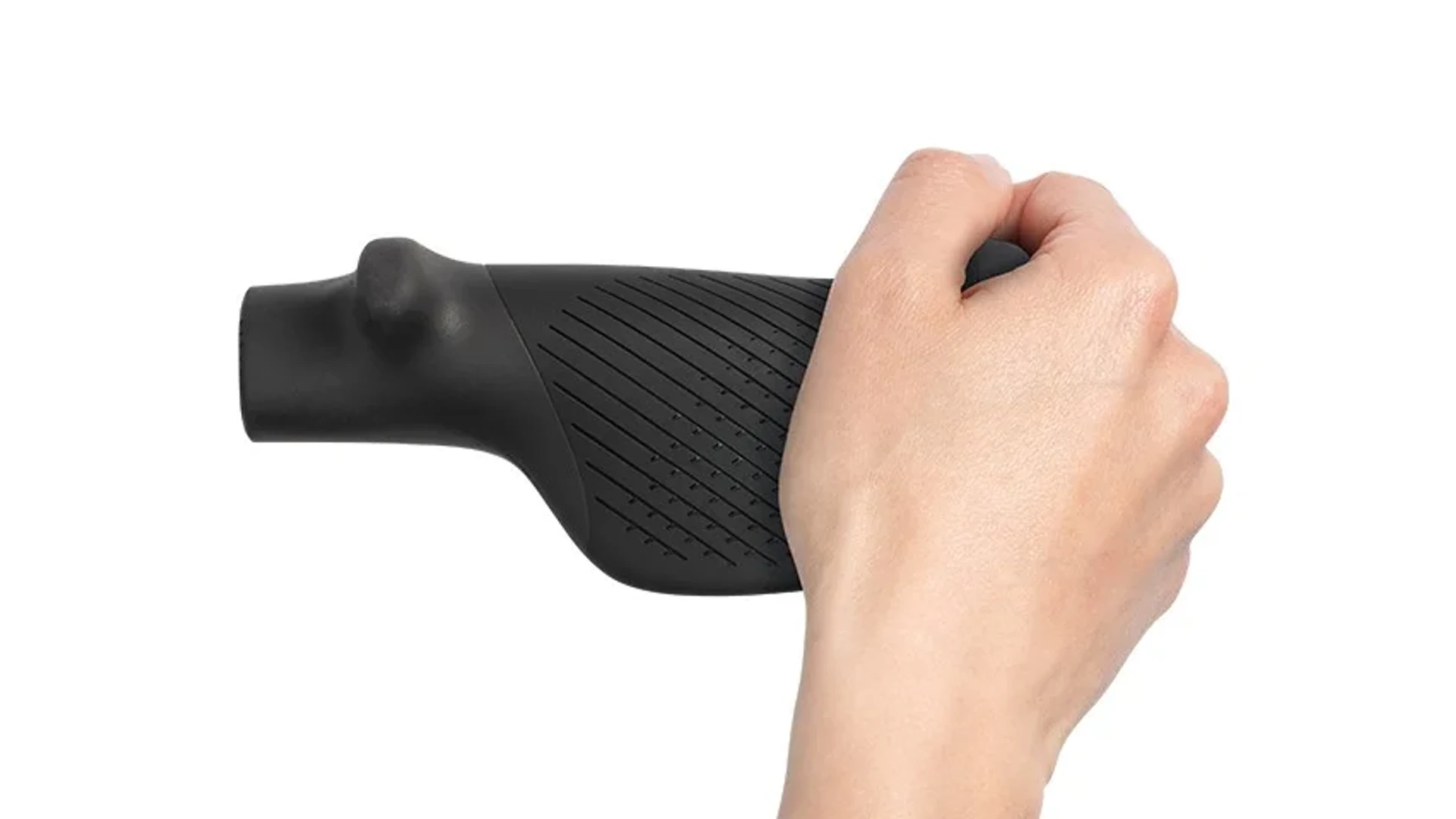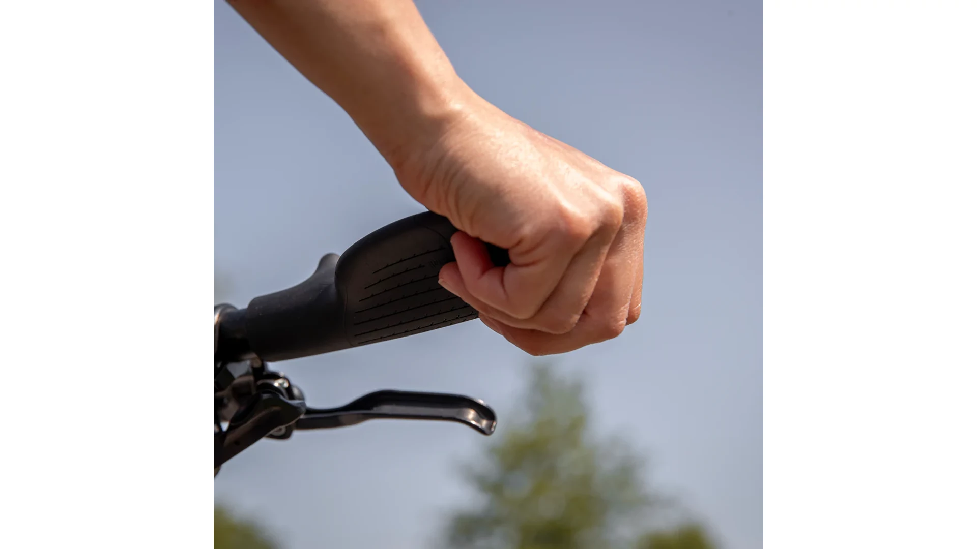 A kormányvég-szerű külső fogáspozíció jelentősen tehermentesíti a csuklót és a kart. Ez változatos kéztartást tesz lehetővé, csökkenti a terhelést és a fáradtságot. Így a kezek hosszabb tekerések során is lazák és fájdalommentesek maradnak. A felfelé ívelt markolatvég növeli az érintkezési felületet és természetesebb kéztartást biztosít, ami tovább növeli a kényelmet és a stabilitást.