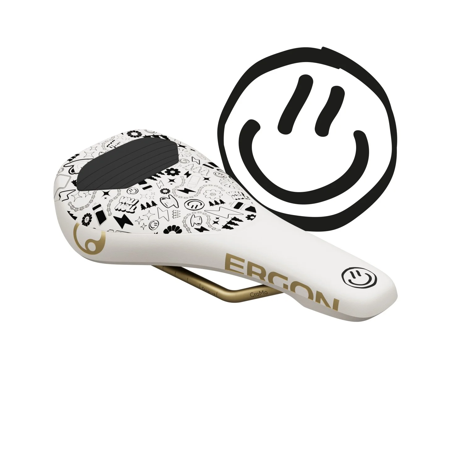 Az SM Downhill Comp megjelenésével is kitűnik a tömegből. A prototípustól kezdve egészen a Világkupa tesztekig egy látványos grafikát alkalmaztunk, amely a gyártásba került Team Edition modellen is megjelenik. A feltűnő Oil Slick CroMo sínek tökéletesen passzolnak a GD1 Evo és GFR1 markolatoknál használt Oil Slick bilincsekhez. Azok számára, akik visszafogottabb megjelenést preferálnak, az SM Downhill Comp fekete változatban, fehér logóval is elérhető.