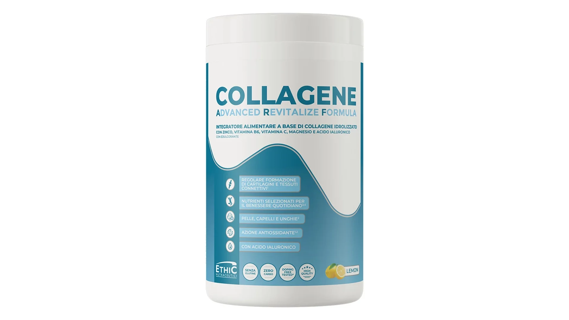 Az EthicSport Collagene 400® készítménye szarvasmarhából enzimatikus hidrolízissel kivont nagy tisztaságú kollagént, valamint cinket, B6-vitamint, C-vitamint és magnéziumot tartalmaz vízoldható por kiszerelésben hialuronsavval.