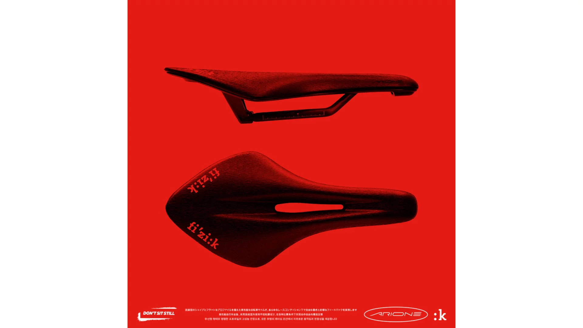 Az Arione egy nagy teljesítményű verseny nyereg, amelyet sebességre terveztek. Lapos profilja és hosszú, áramvonalas formája révén a Fizik kínálatának leghosszabb nyerege, amely bőséges mozgásteret biztosít előre-hátra. Ez támogatja az erőteljes pedálozást és a pozícióváltást intenzív országúti versenyeken és időfutamokon. Ideális agresszív, aerodinamikus testhelyzethez, segít fenntartani az optimális pozíciót, csökkenti a nyomást és maximalizálja a teljesítményt.