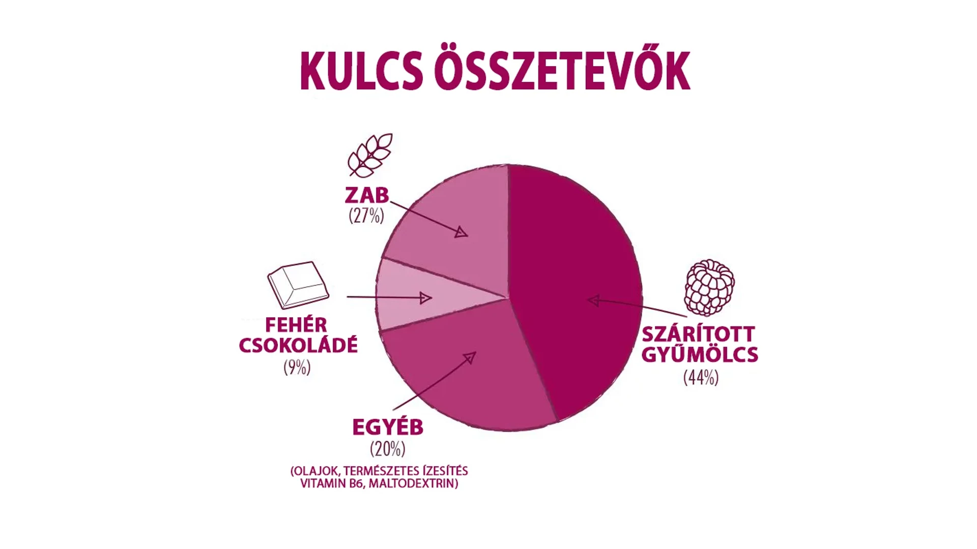 - Szárított gyümölcs 44% (málna, ananász, áfonya)