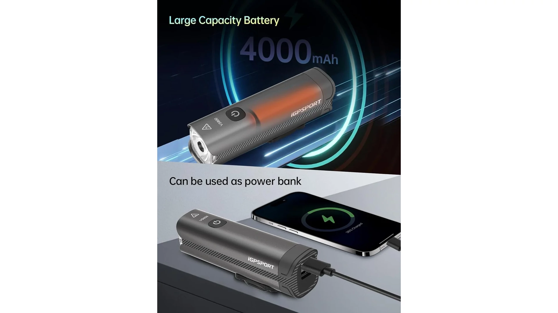A VS800 kerékpár első lámpa erős fényével kiválóan bevilágítja az utat és az akkumulátor merülése miatt sem kell többet aggódnod. A 4000 mAh teljesítményű lithium akkumulátor gondoskodik a lámpa rendkívül hosszú üzemidejéről és egyéb elektronikai eszközeid feltöltésére is használhatod. Ezen kívül egy intelligens akkumulátor töltöttség előrejelzővel is rendelkezik, mely folyamatosan valós információt szolgáltat a computered és az applikációd számára az akkumulátor pillanatnyi állapotáról, így pontosan tudod követni mennyi időre elegendő még benne az energia.
