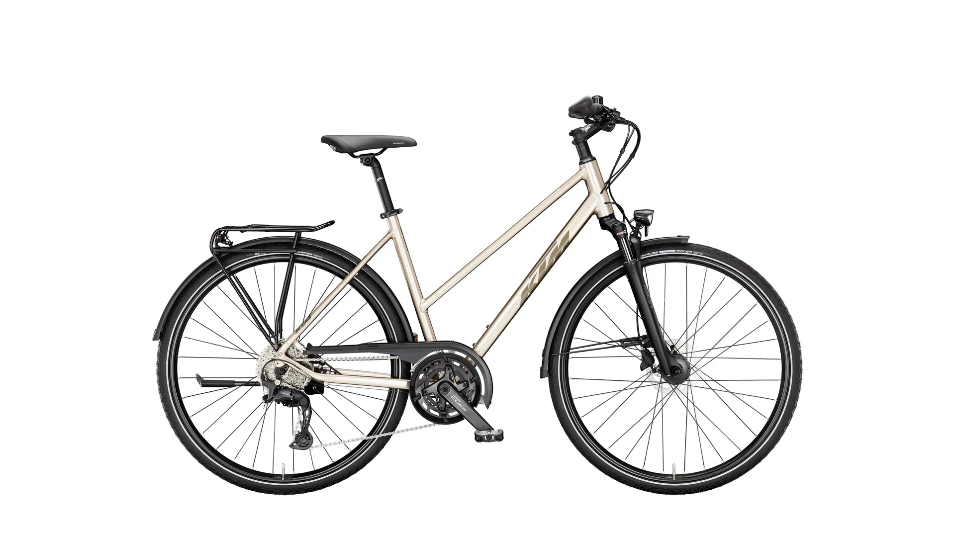 A Shimano CUES 2x10 sebességes váltórendszer precíz váltást és széles sebességtartományt biztosít, így a kerékpár könnyedén alkalmazkodik a különböző terepviszonyokhoz. A Schwalbe Marathon Racer gumiabroncsok kiváló tapadást nyújtanak az aszfalton és a könnyebb terepen egyaránt, míg a Shimano MT201/MT200 tárcsafékek biztosítják a biztonságos megállást bármilyen körülmények között.