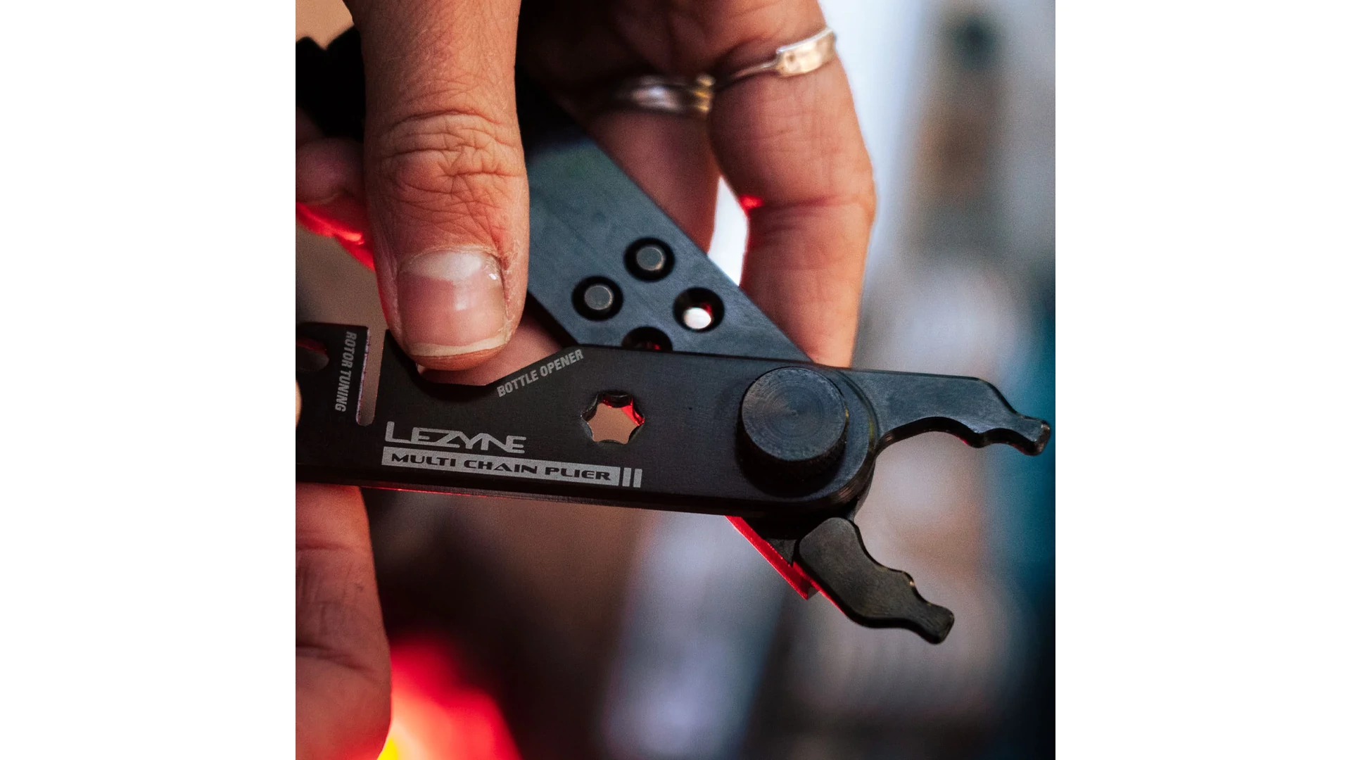 A Multi Chain Pliers egy professzionális minőségű, sokoldalú kerékpárlánc multi-szerszám, amelyet országúti vagy terepen végzett javításokhoz terveztek. CNC-megmunkált alumíniumból készül, és több praktikus funkciót is egyesít: beépített gyorsszem-szerszámot, láncbontót, szelepmag-kiszedőt, sörnyitót, féktárcsa-igazítót, valamint mágneses tartókat akár két tartalék gyorsszem számára. Karcsú kialakítása kiváló hordozhatóságot biztosít, miközben tartós használatra tervezték. Eloxált felülettel és edzett acél láncbontó tűvel rendelkezik. Legyen szó hegyikerékpárosokról, országúti bringásokról vagy gravel kerékpárosokról, sokoldalúsága a műhelyben és a terepen egyaránt rendkívül hasznos.