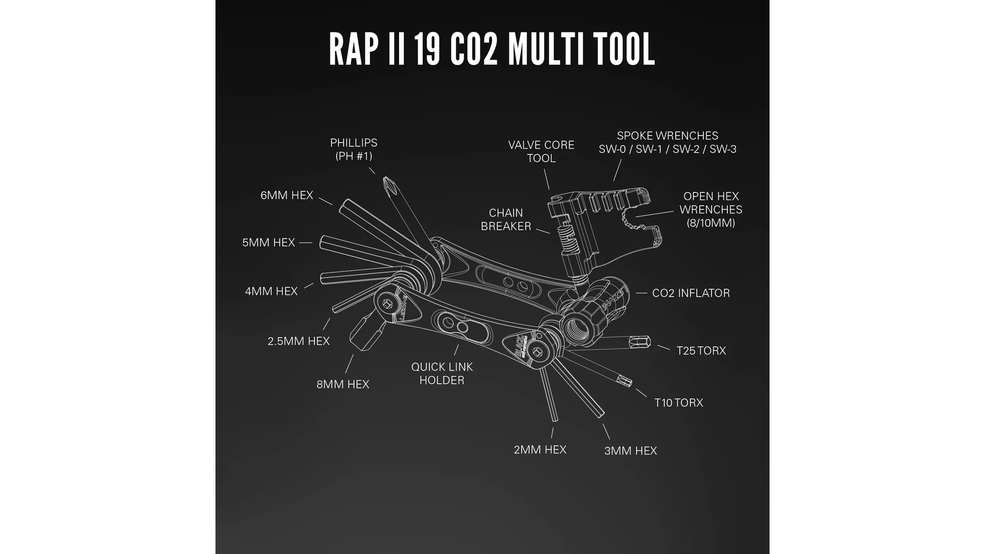 A stílusos megjelenést a precíz mérnöki megoldásokkal ötvözve a RAP II kerékpáros multiszerszám-sorozat kiemelkedő teljesítményt nyújt. A házon belül tervezett, fejlesztett és gyártott RAP II szerszámok mindegyike innovatív megoldásokkal van tele: a könnyű, ergonomikus, CNC-megmunkált alumínium oldallemezektől kezdve a beépített mágneses gyorsszem-tartókig, valamint a hosszabb, edzett acél szerszámbitekig, amelyek megkönnyítik a nehezen hozzáférhető csavarok elérését. Az acél szerszámbitek Black Anti-Corrosion technológiával készülnek, amely fokozott korrózióállóságot biztosít. Kompakt és sokoldalú kialakításuknak köszönhetően ezek a multiszerszámok tartós használatra készültek, és arra lettek tervezve, hogy gyorsan segítsenek visszajuttatni a kerékpárost az útra vagy az ösvényre.