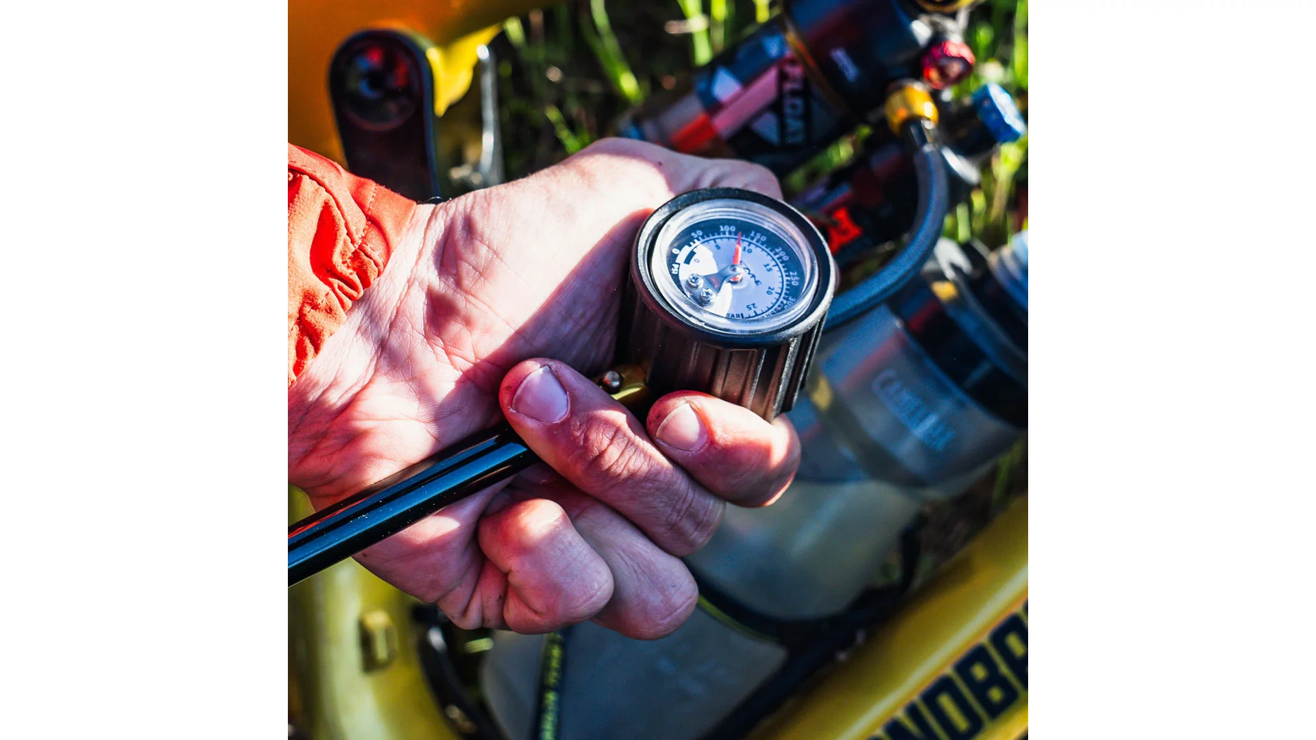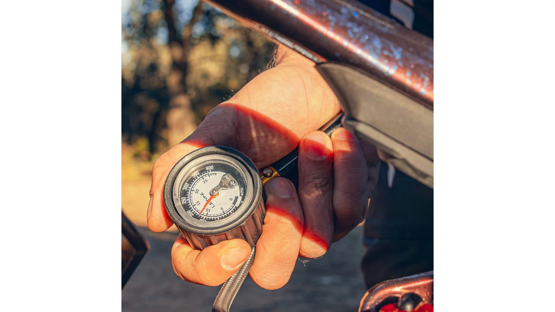 A strapabíró Composite Matrix burkolat védi a nyomásmérőt és javítja a fogást. Maximális nyomás: 400 PSI (27.5 bar).