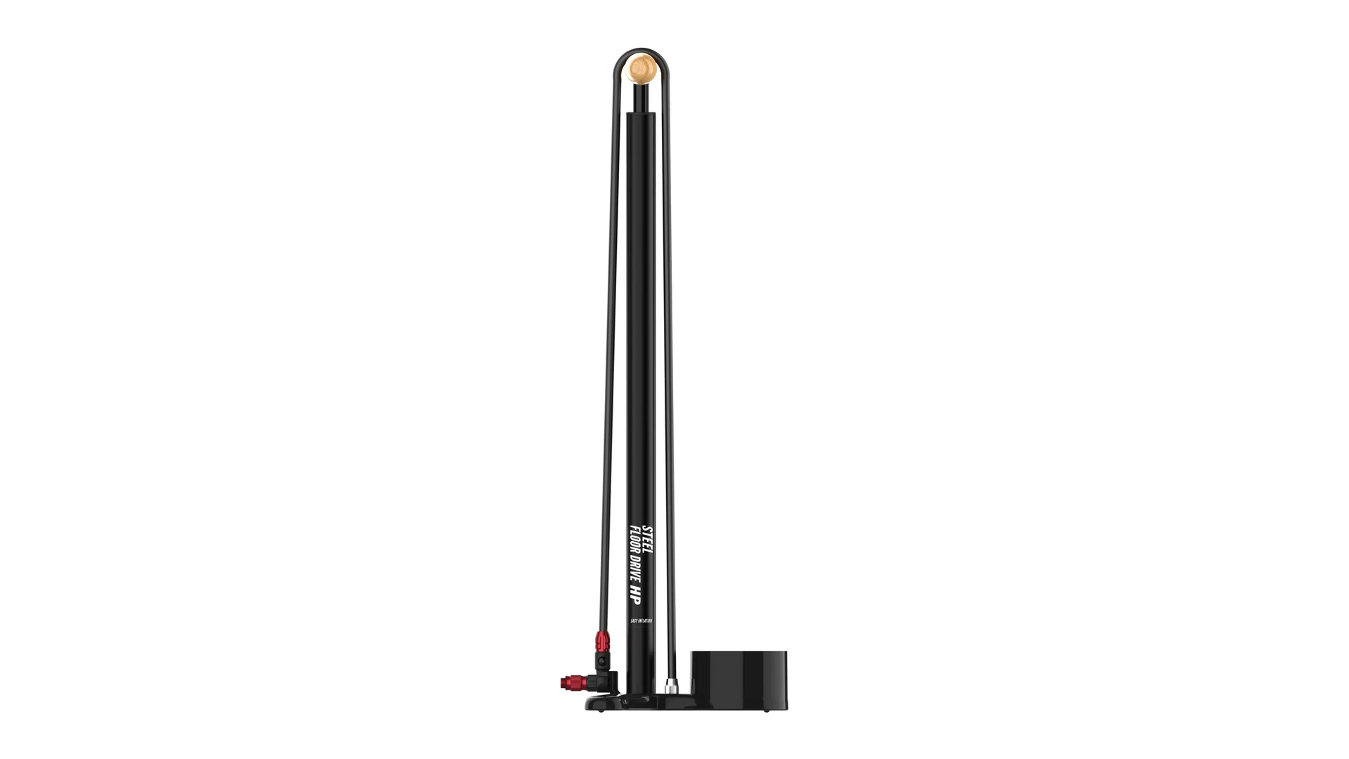 A Steel Floor Drive 3.5 festett, tartós acél hengerre és dugattyúra épül, amelyet CNC-megmunkált alumínium talp, lakkozott fa markolat és egy túlméretezett, rendkívül pontos analóg nyomásmérő egészít ki. Az extra hosszú tömlő megkönnyíti a pumpálást, akár a földön, tartón vagy szerelőállványon van a kerékpár.