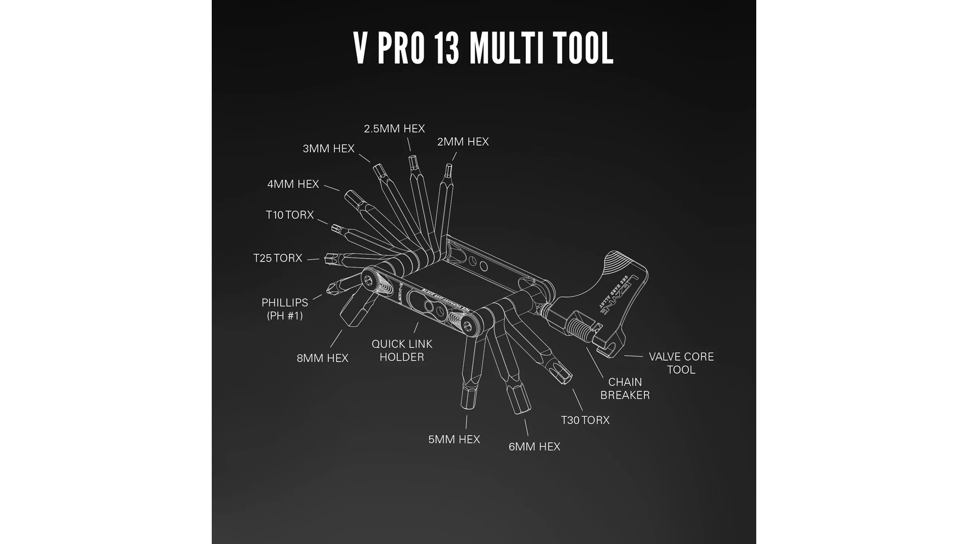 A V Pro kerékpáros multiszerszám-sorozat a modern kerékpárokhoz fejlesztett, kifinomult eszközök válogatását kínálja. Minden modellt házon belül terveztek és gyártanak, hogy hatékonyan segítsenek a legtöbb útközben vagy terepen felmerülő javításnál. A CNC-megmunkált acél szerszámbitek hosszabb kialakításúak, és a Black Anti-Corrosion technológiával készülnek, amely kiemelkedő korrózióállóságot biztosít.