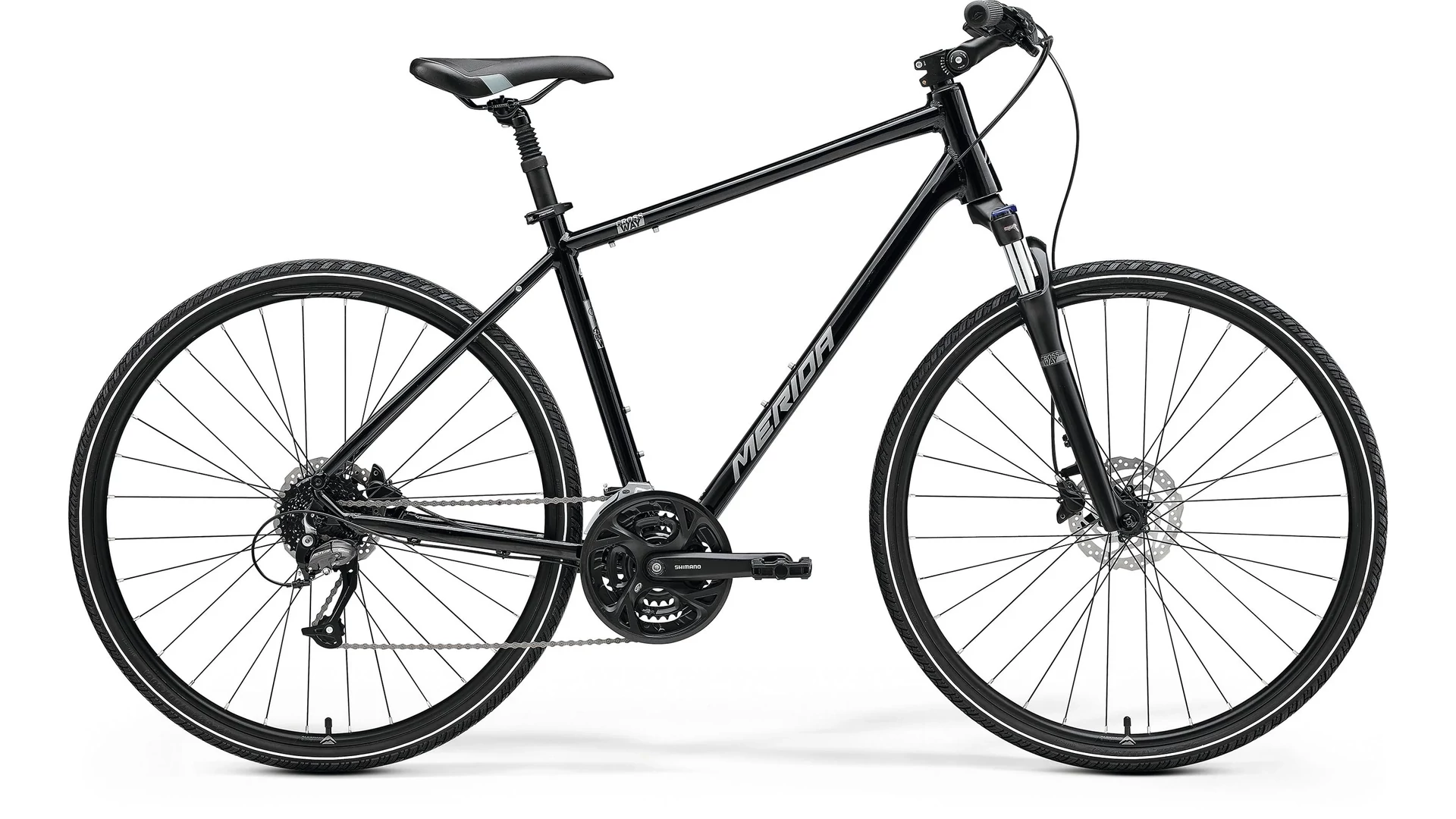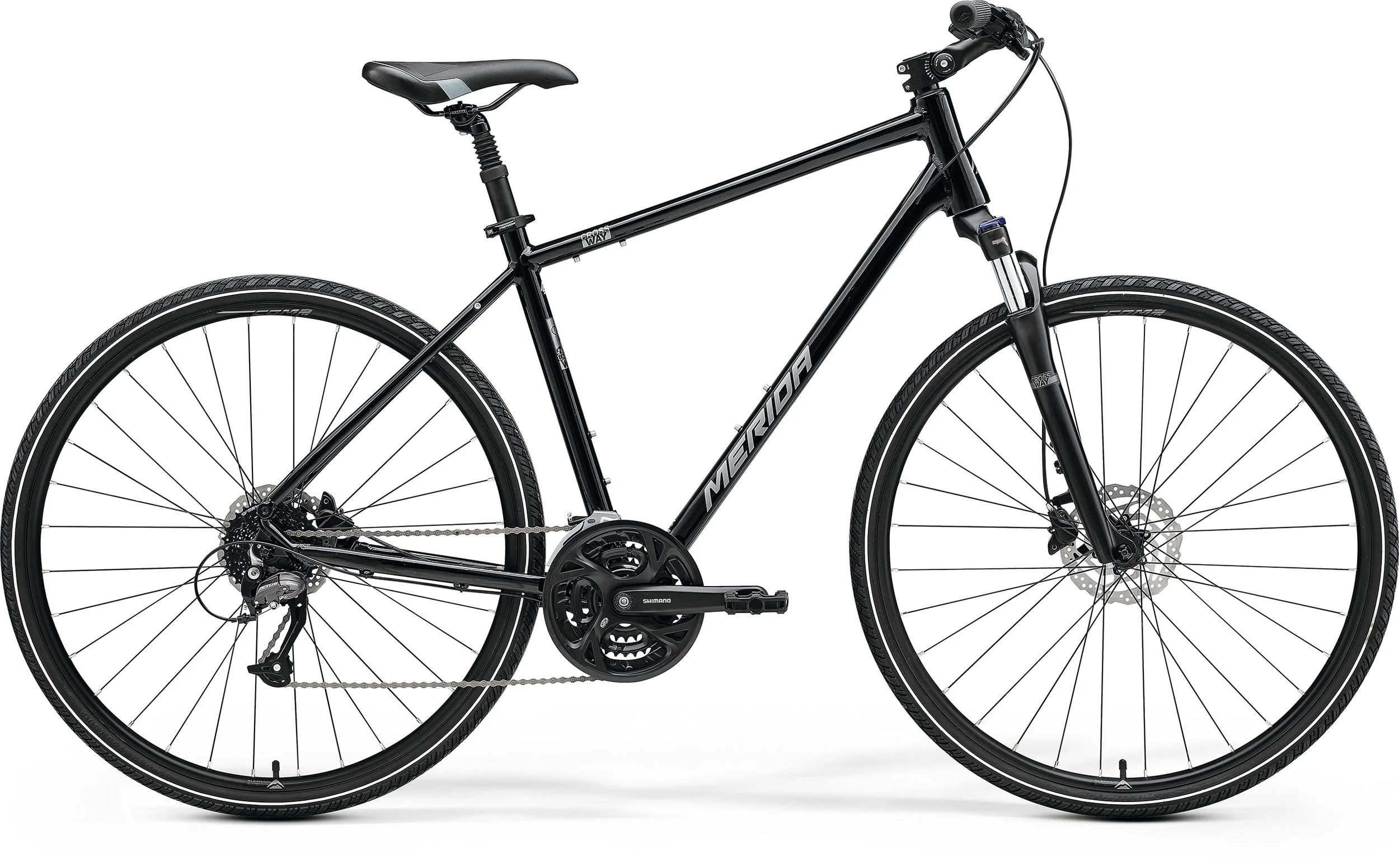 A CROSSWAY család a MERIDA termékcsalád gerincét képezi a bevezetése óta. Világszerte használják őket, és bizonyítottan megbízható, sokoldalú és szórakoztató közlekedési módot jelentenek. Úgy tervezték őket, hogy a felegyenesedett üléspozíciónak és a kényelemre összpontosító felszereltségnek - mint például a rugós villa, a rugós nyeregcső és az állítható kormányszárak - köszönhetően kényelmesen élvezhesse a környezetet, így a kényelem, az élvezet és a sokoldalú funkcionalitás tökéletes keverékét kínálják. Alkalmasak fitneszedzésre, ingázásra, erdei és ösvényeken való laza tekerésre. A kiváló minőségű, könnyű alumíniumból készült sárvédők, csomagtartók és rugóstagok felszerelésére alkalmas CROSSWAY termékcsalád tökéletes választás a mindennapi motorozáshoz. A felszerelt 700c kerekek könnyen gördülnek terepen, míg a 40 mm széles abroncsok extra térfogata defektvédelmet, tapadást és kényelmet biztosít.