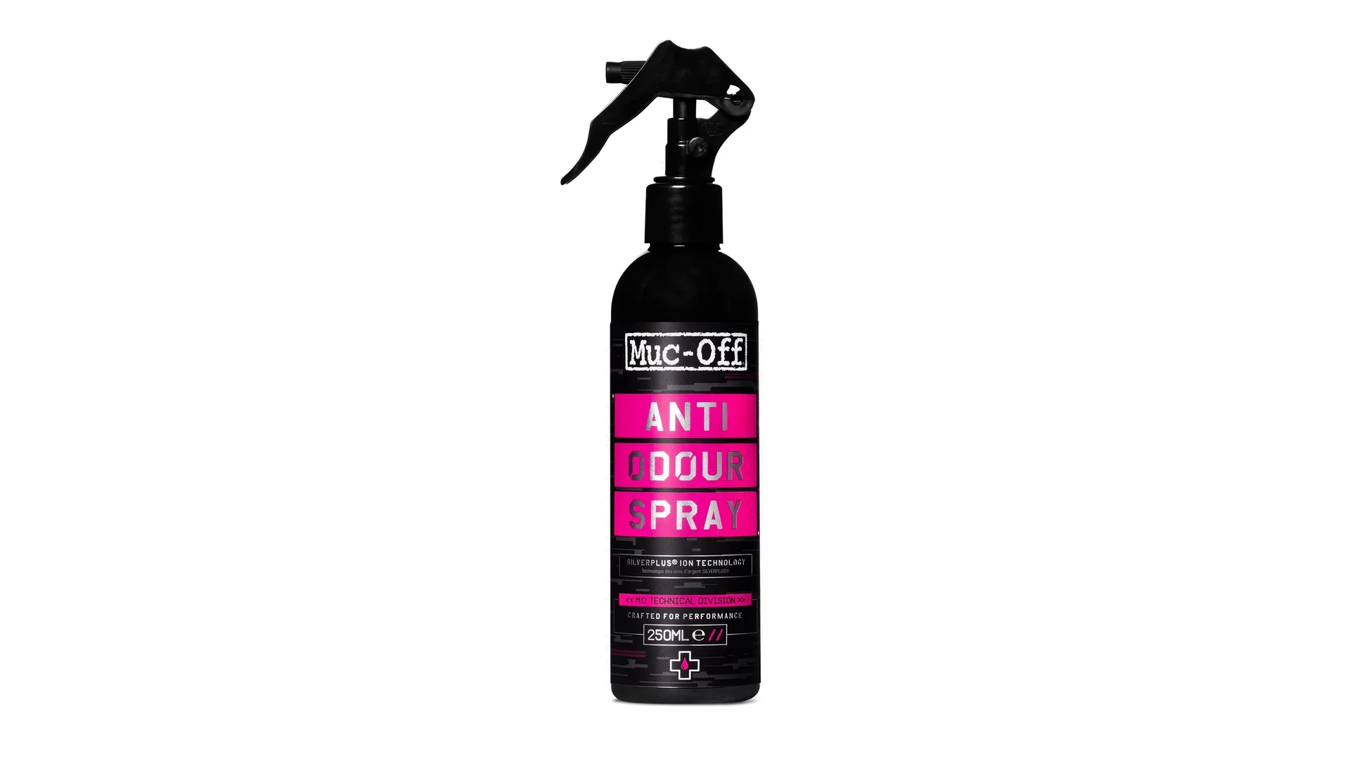 Muc-Off Anti Odour szagtalanító spray egy rendkívül hatékony, könnyen használható szag elleni spray, amely SILVERPLUS® ezüstion technológiát használ. Ideális a baktériumok okozta szagok eltávolítására a testpáncélról, cipőbélésről, kesztyűről, betétről vagy bármilyen puha anyagból, szintetikus szálból vagy textilből, amely érintkezik a bőrrel, és idővel szagos lesz.