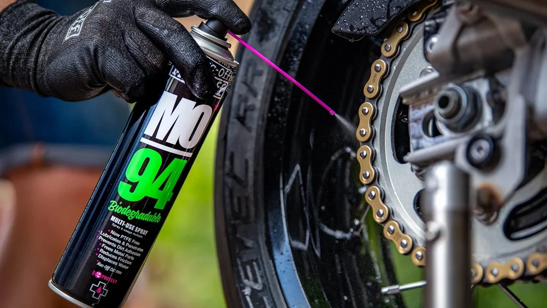 Muc-off MO-94 egyedi PTFE formulával, gyorsan és hatékonyan kezeli az alkatrészeket, hogy könnyen mozgathatóak legyenek, védőréteget képezve ezeken. Megakadályozza a szennyeződések lerakódását, vízlepergető hatású, a rozsda és a korrózió is megelőzhető használatával. MO-94 nem csak kerékpárokra, hanem motorkerékpárra és autóra is használható. Sokrétű a használata, akár egy rozsdás zárról, vagy csavarról legyen szó, amit nem tudsz elfordítani.