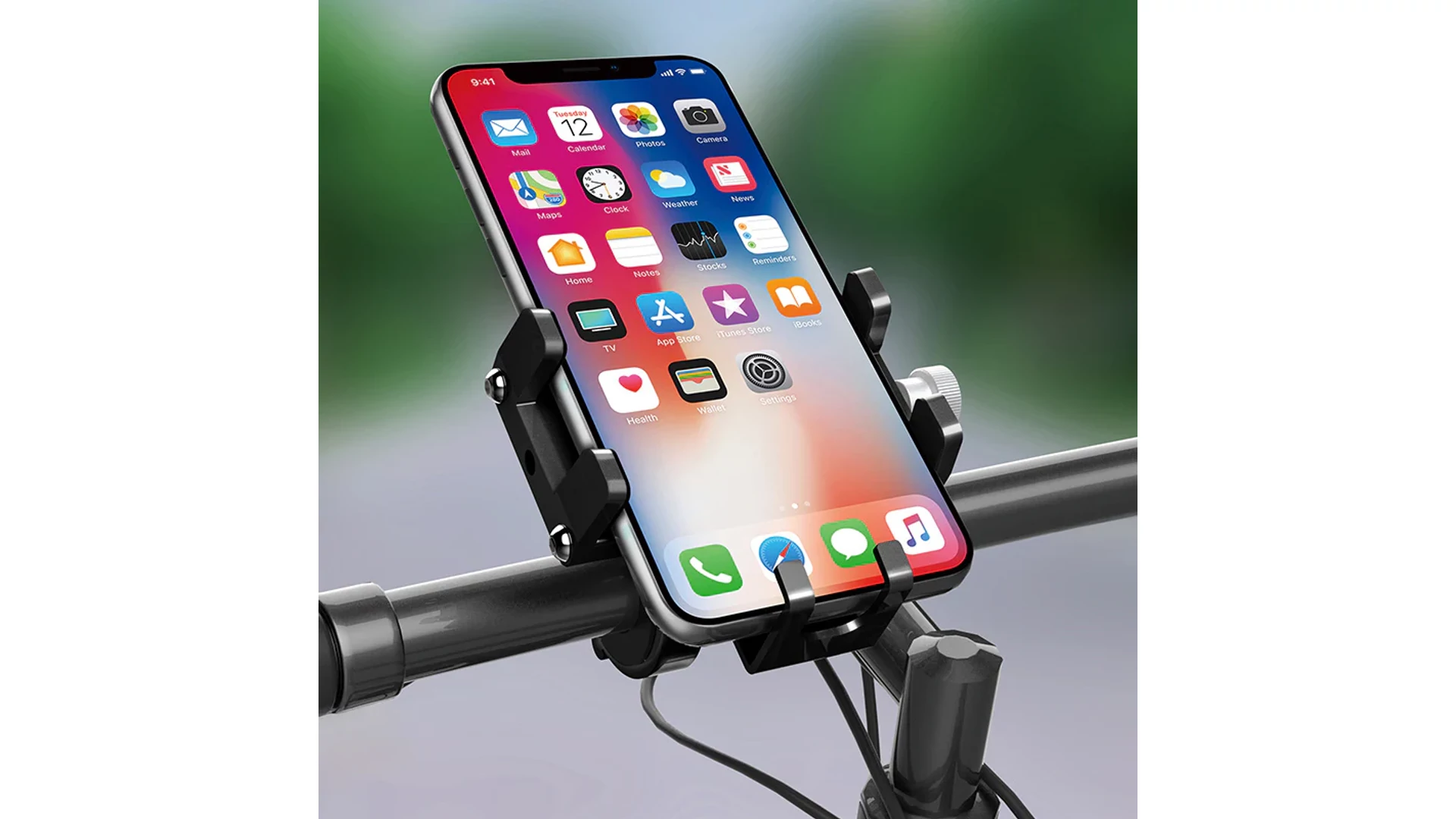 60-100 mm (2,36"-3,94") szélességű telefonokhoz és 20–35 mm átmérőjű kormányokhoz illeszkedik az állítható gumibetétnek köszönhetően.