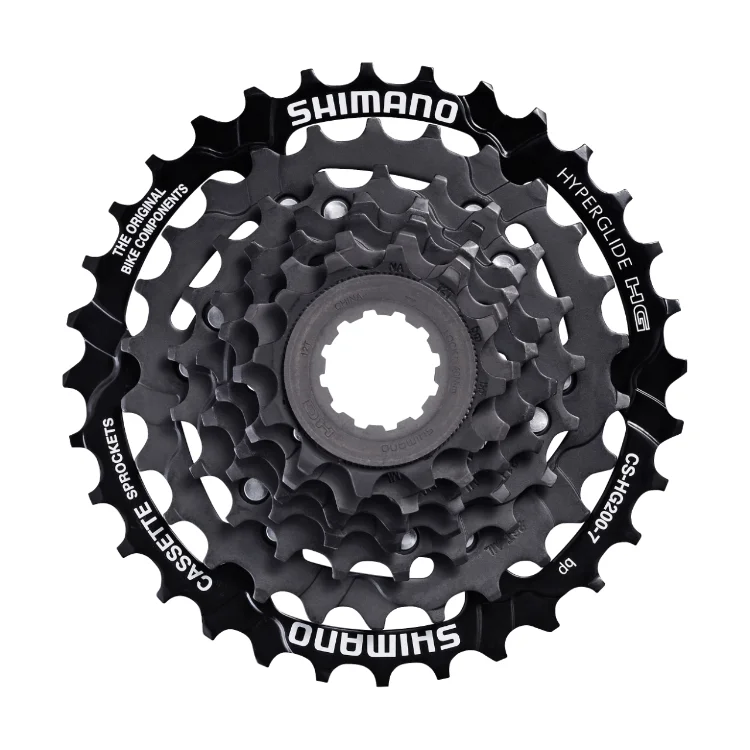 A SHIMANO HG200-7 fogaskoszorú ideális választás azoknak a kerékpárosoknak, akik megbízható és tartós 7 sebességes rendszert keresnek, amely kiváló váltásteljesítményt nyújt különböző terepviszonyok között is.