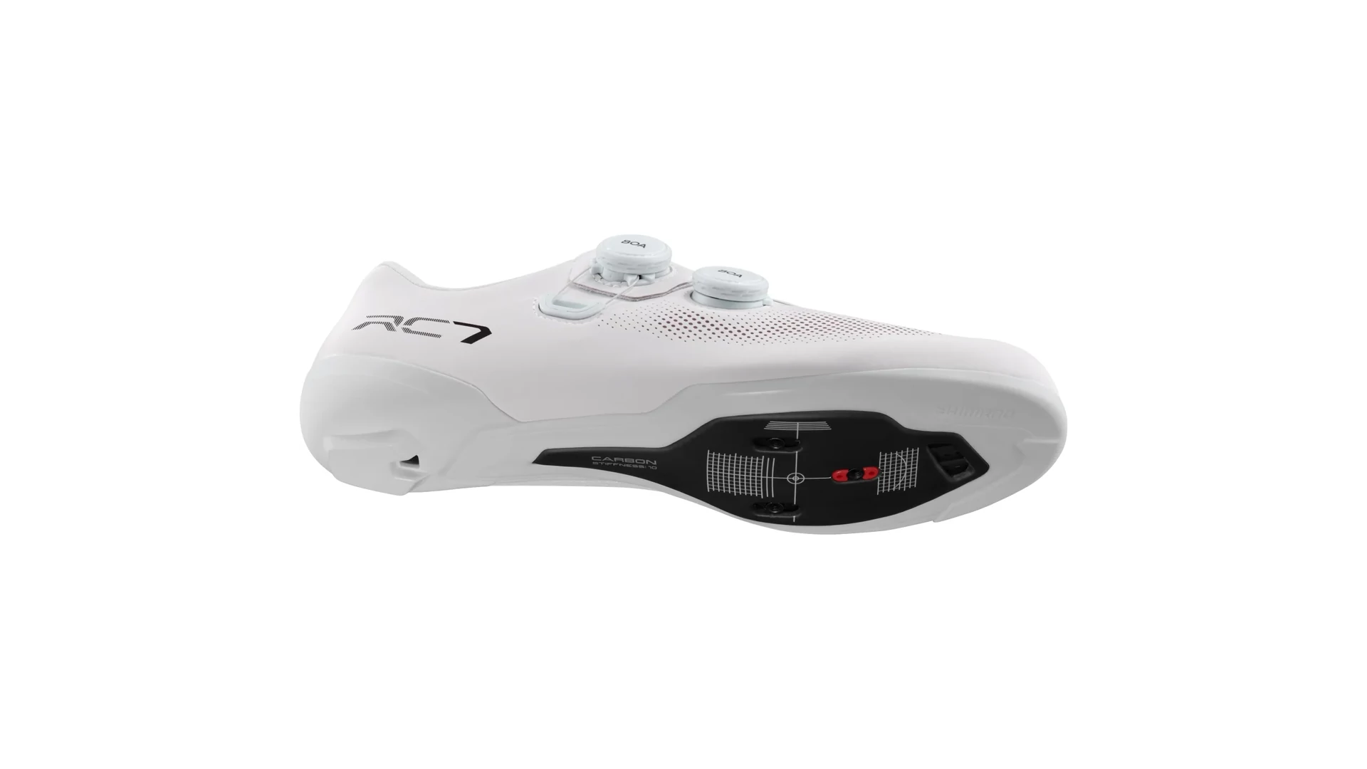 A SHIMANO RC703 Wide egy versenykategóriás szélesített országúti kerékpáros cipő, amely az S-PHYRE technológia előnyeit kínálja a kerékpárosok számára. A magas merevségű, üreges karbon középtalp hatékonyan szellőzteti a lábat és elvezeti a nedvességet, míg a BOA® Fit System két kompakt L6 típusú tekerőgombja precíz illeszkedést biztosít.