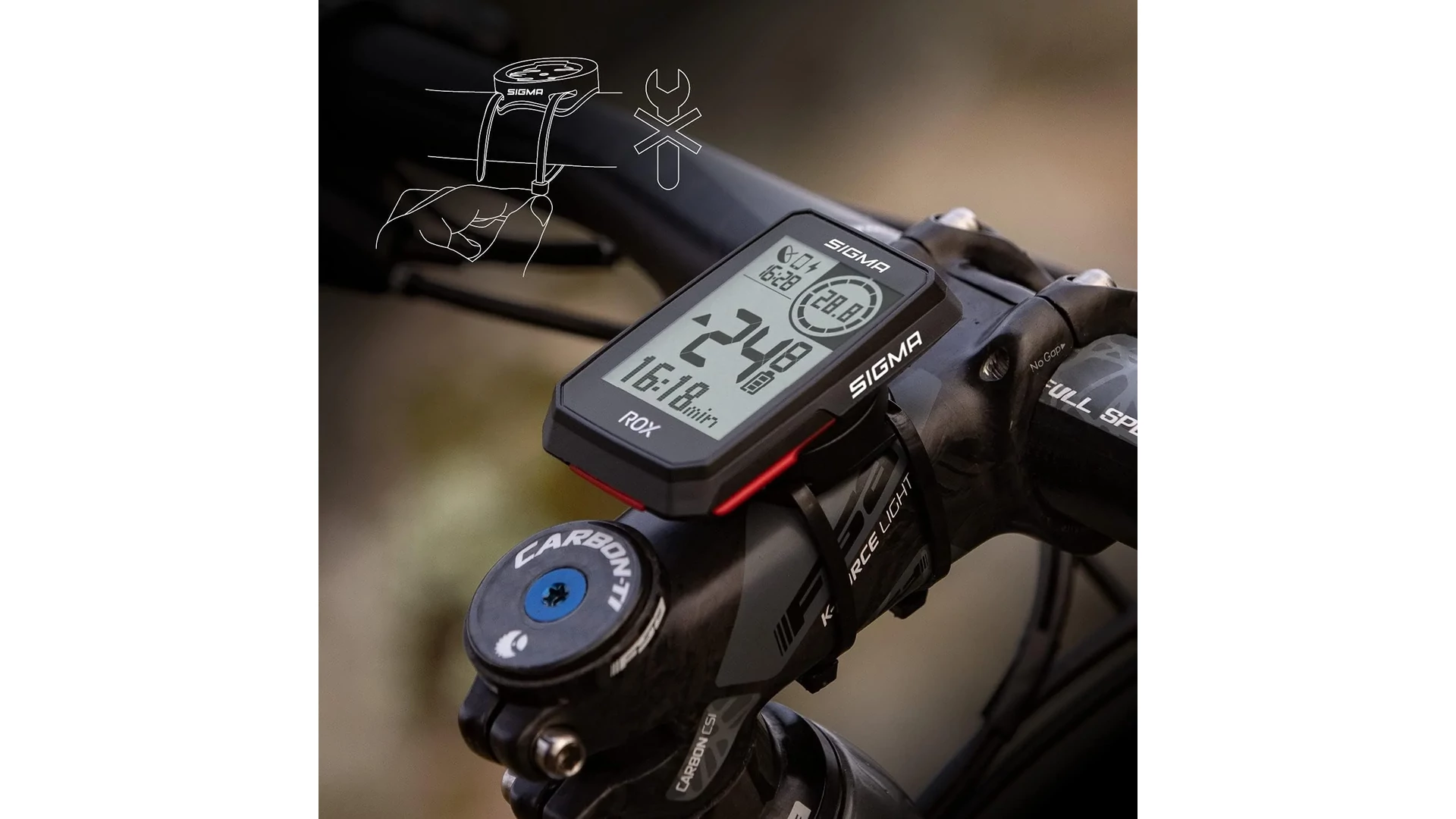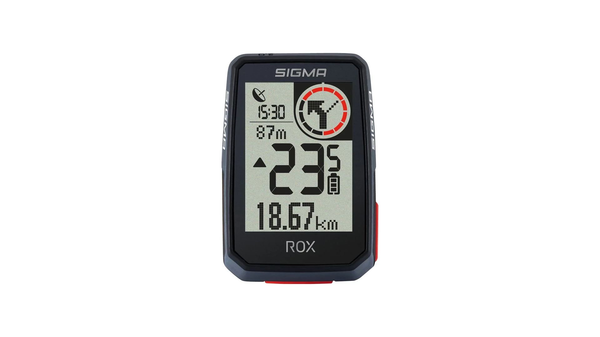 Nagyméretű kijelző (30x42 mm - 2") jól olvasható, nagy számokkal. Innovatív iránymutató navigáció: piros kör jelzi a következő irányváltás távolságát. A Sigma Ride App-pal személyre szabhatóak a kijelzőn megjelenített adatok 6 változatban.