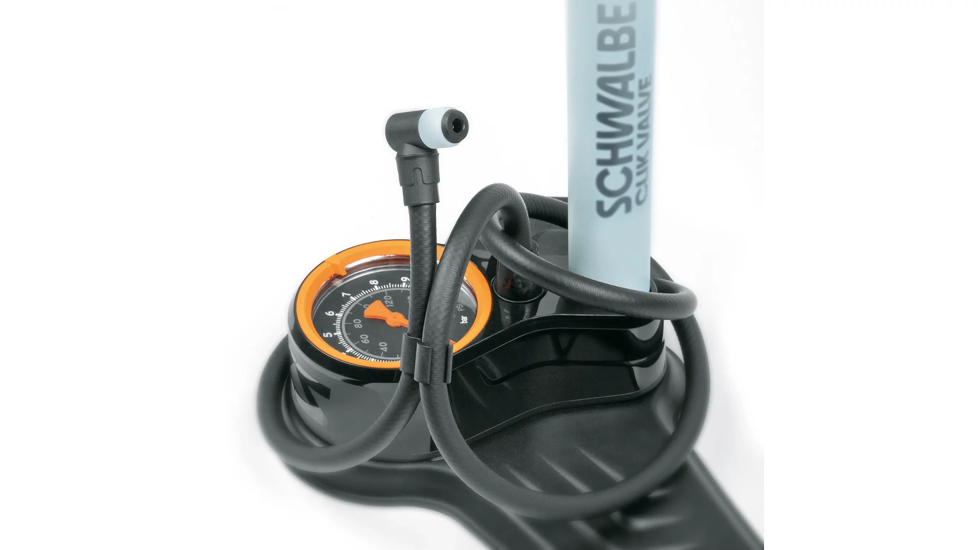 Levegőerő SKS/Schwalbe dizájnban: a jól bevált Air-X-Plorer egyedi megjelenéssel érkezik, és az SKS CLIK TEC szeleppel van felszerelve. Ez egy hallható „kattintással” egyszerűen csatlakoztatható az új Schwalbe Clik szelepre. A pumpa további jellemzői közé tartozik a nagyméretű, precíz nyomásmérő, a masszív pumpacső és az ergonomikusan kialakított fogantyú.