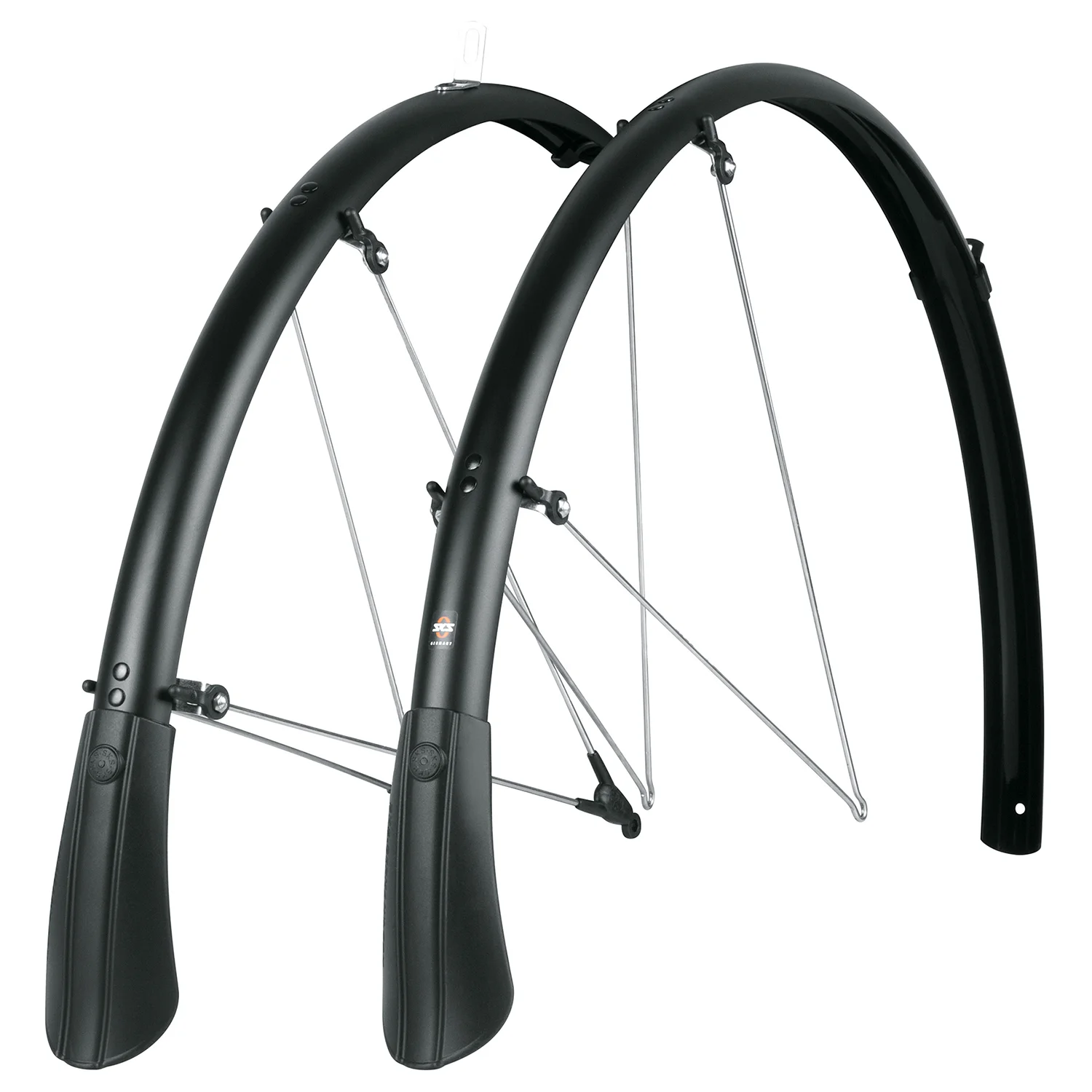 A Bluemels Matt sárvédőszettel az esővíz és a felverődő szennyeződés nem rúg labdába. A klasszikus SKS sárvédők matt kivitelben nemcsak hatékony védelmet nyújtanak, hanem megjelenésükben is feldobják a kerékpárt. A Bluemels Matt sárvédők letisztult dizájnjukkal, egyszerű felszerelhetőségükkel, valamint az első és hátsó keréknél elhelyezett spoilerekkel tűnnek ki. A rugalmas szendvics szerkezetnek köszönhetően – amelyben ultrafinom alumíniumcsíkok vannak műanyag bevonatba ágyazva – rendkívül erősek, merevek és korrózióállók.